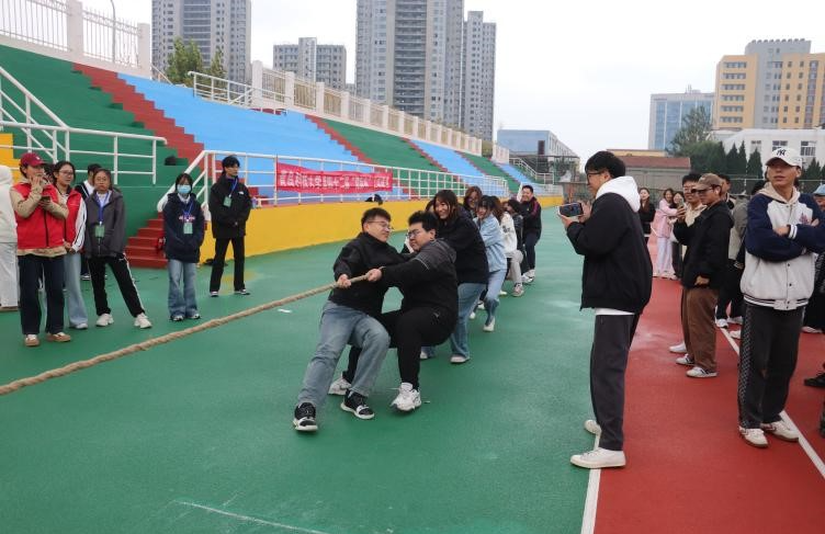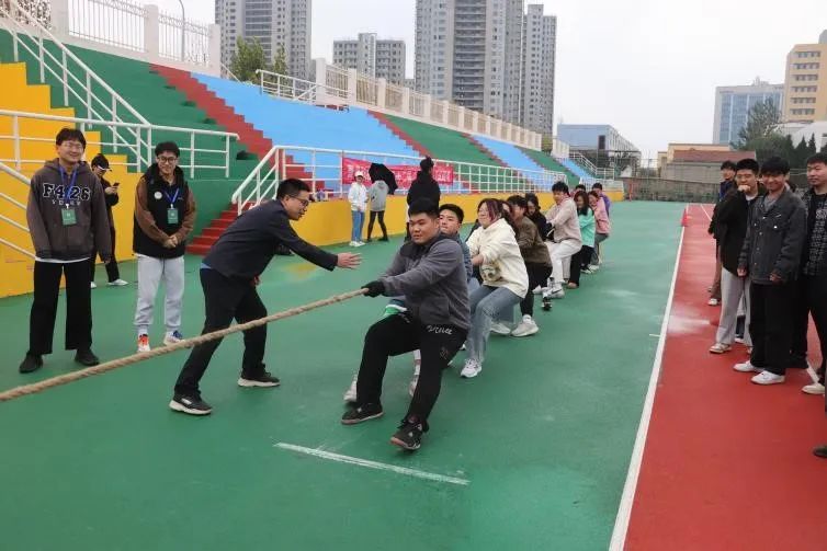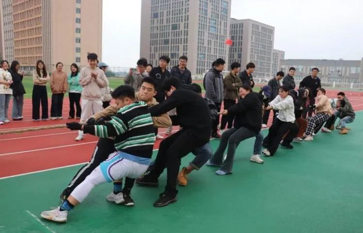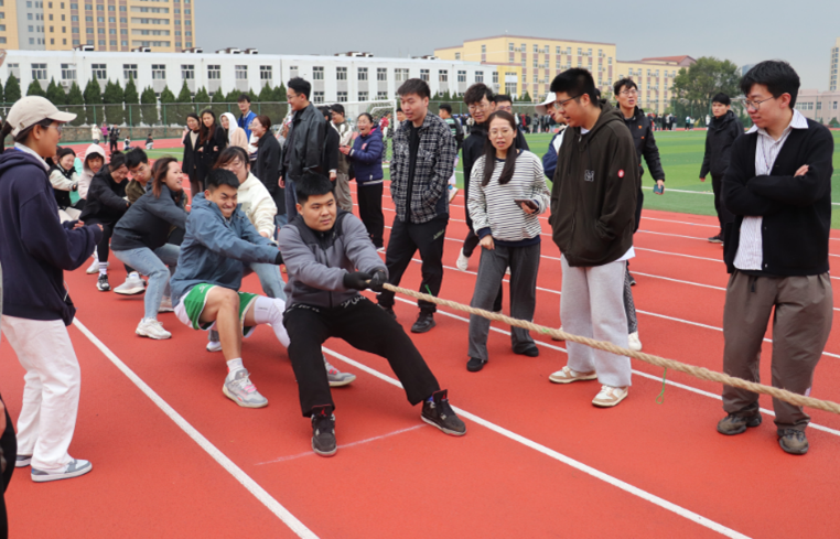 本次拔河比赛为研究生组别,以班级为单位进行参赛,共六支队伍。比赛现场,热闹非凡,随着裁判的一声哨响,各队队员齐心协力,紧握绳索,双脚用力蹬地,身体后倾,卯足了劲拼命往后拉。队员们的口号声、观众的加油呐喊声交织在一起,回荡在赛场上空。