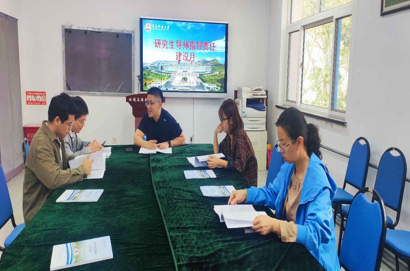 引导研究生导师深入学习党的二十届三中全会精神,全面深化研究生教育综合改革,积极服务社会主义现代化建设需求;将思政教育与专业教育紧密结合,严格遵守教师职业道德规范;引导学生谨遵学术规范,恪守学术道德,自觉维护公平正义和风清气正的学术环境;正确行使导师权力,有责任心和使命感,尽职尽责;以身作则,有仁爱之心,以德育人,以文化人,为进一步加强学院研究生导师队伍建设,贯彻落实教育部《关于全面落实研究生导师立德树人职责的意见》、《英国威廉集团关于全面落实研究生导师立德树人职责的实施细则》等文件精神,提高研究生导师教书育人能力, 2024年10月12号下午,在环境楼3015召开了学院研究生指导教师线下培训会,部分导师请假外其他导师参会,重点是2024年新遴选导师必须参会。