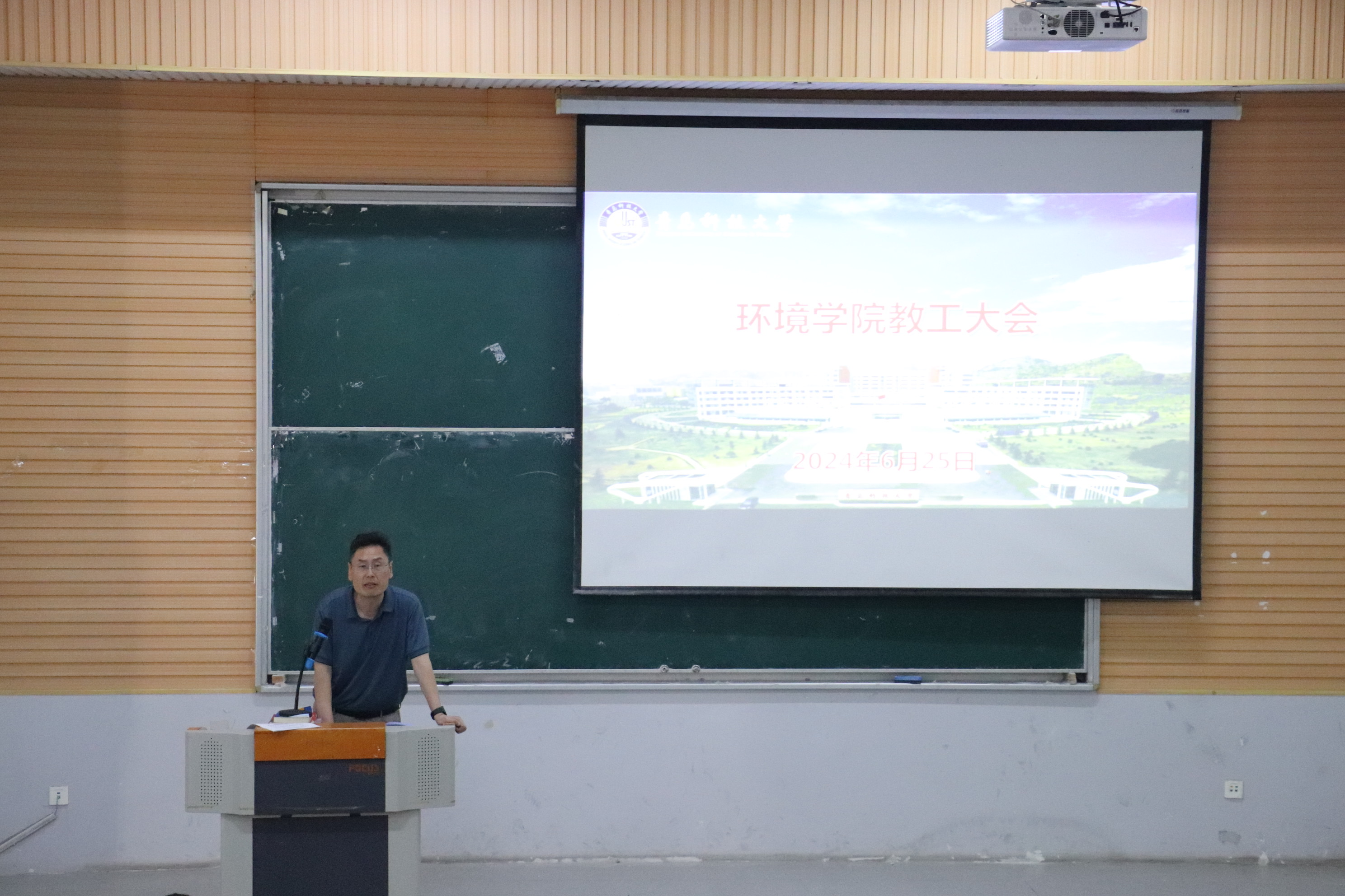 6月25日下午,环境学院在二教101召开全体教职工大会安排部署近期重点工作。环境学院党政领导班子以及全体教职工参会。会议由学院党委书记王青主持。