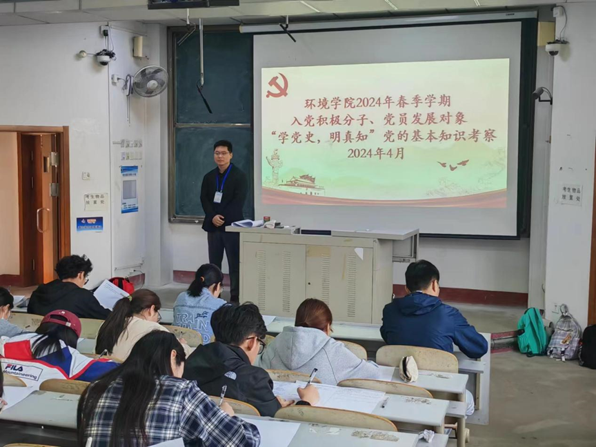 为进一步提高2024年春季入党积极分子、发展对象的政治素养,检验和巩固学习成效。4月16日下午,环境学院在2教215开展党的基本知识测试。