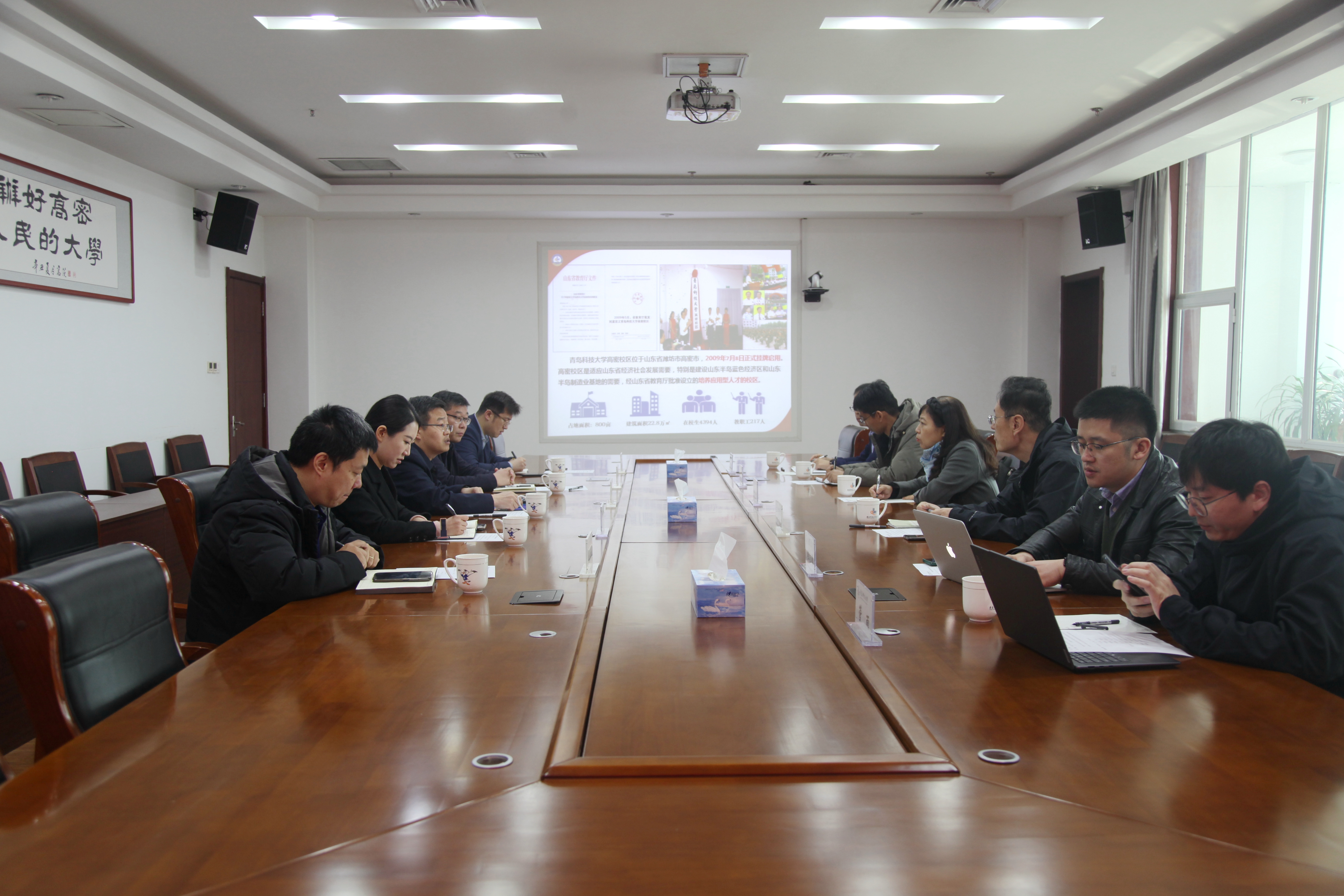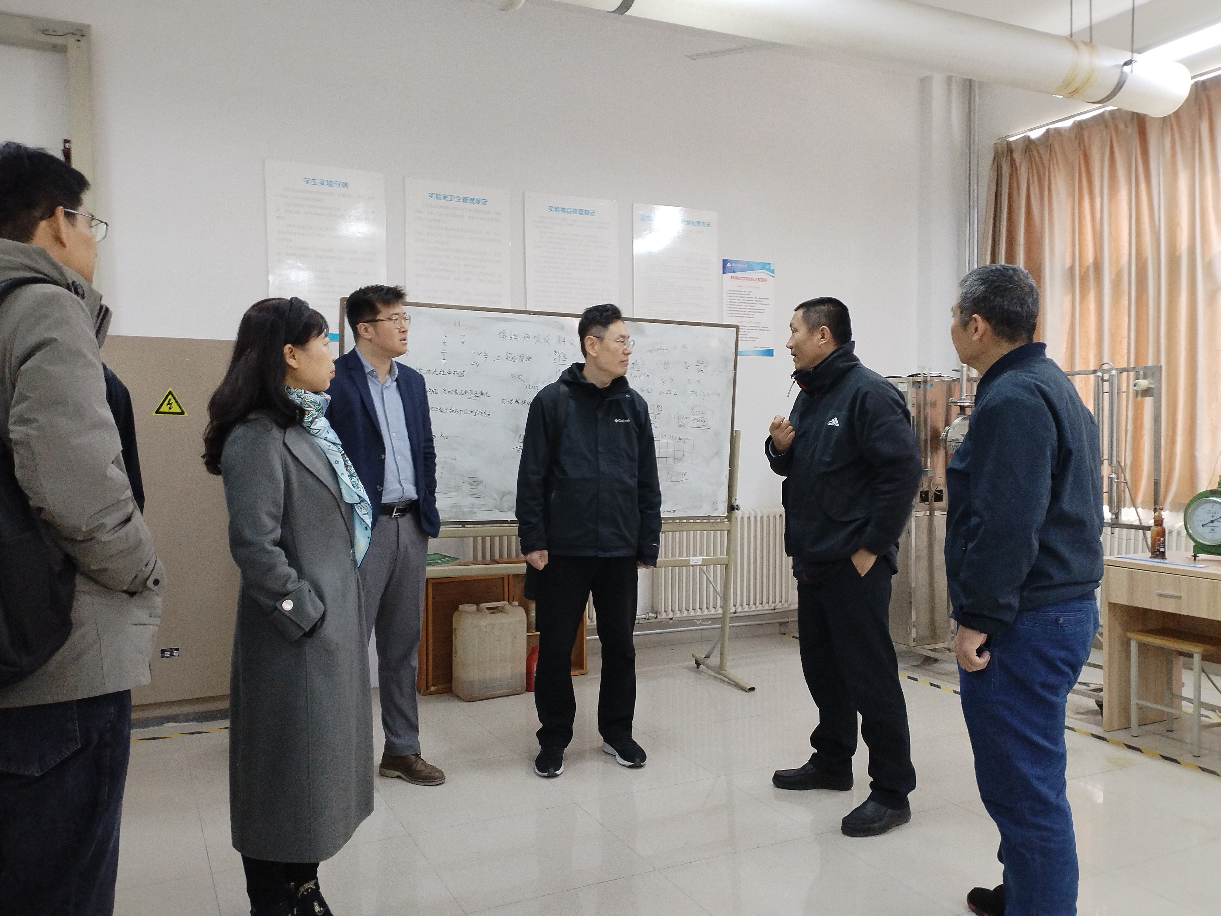 在高密校区,管委会常务副主任张青山对环境学院一行到访表示热烈欢迎,并从校区基本情况、发展历程、党建工作、师资力量、学科专业、人才培养等方面进行了全面介绍。院长田文德简要介绍了学院近年来发展情况。双方就安全工程专业拓展办学、师资力量、人才培养、实验室建设等方面作了深入交流。随后,王青、田文德等一行实地调研了化工专业实验室、虚拟仿真实验室。