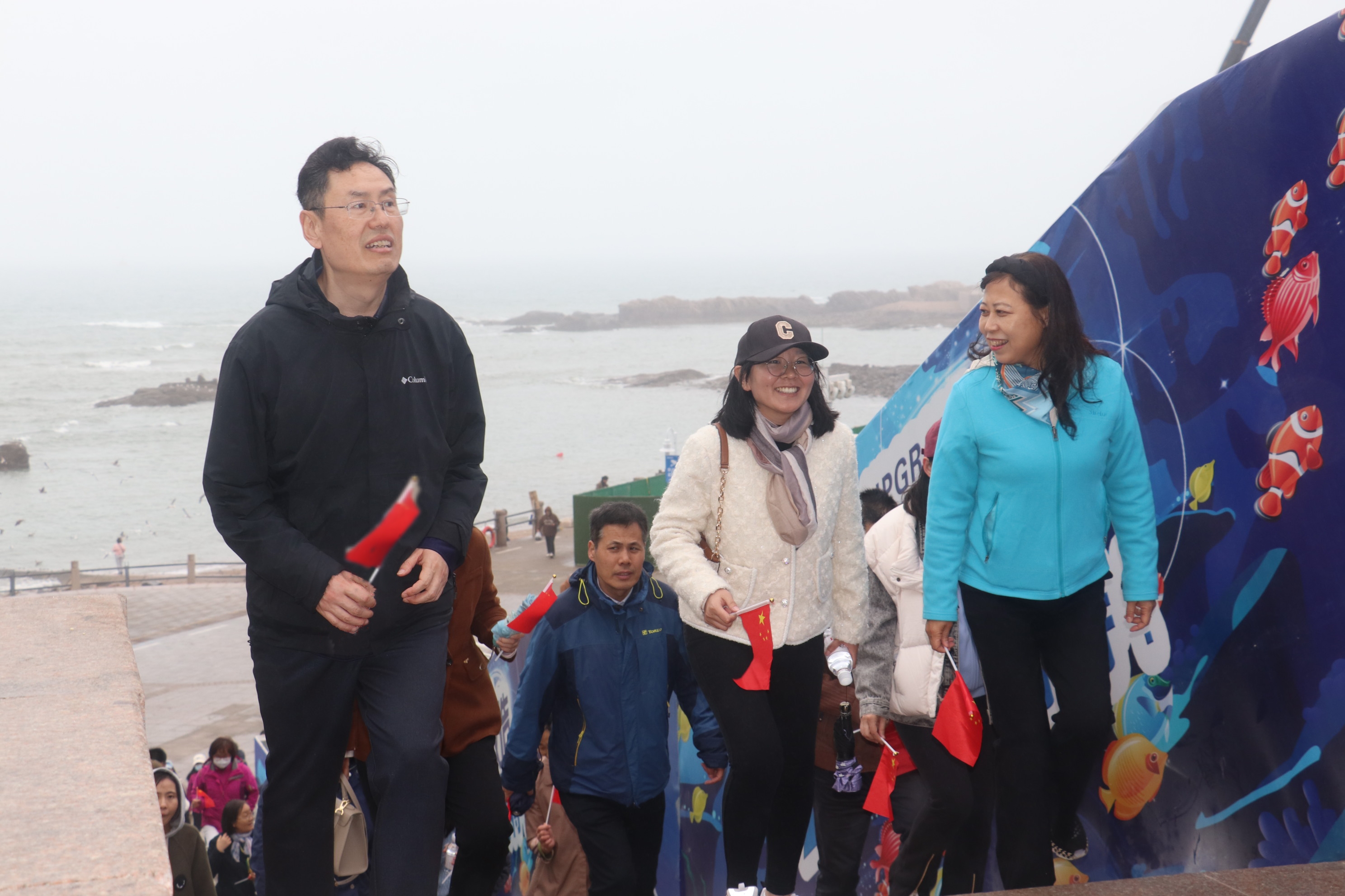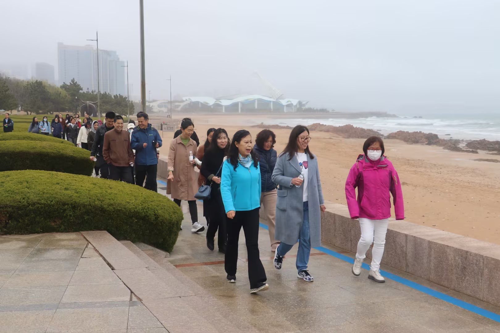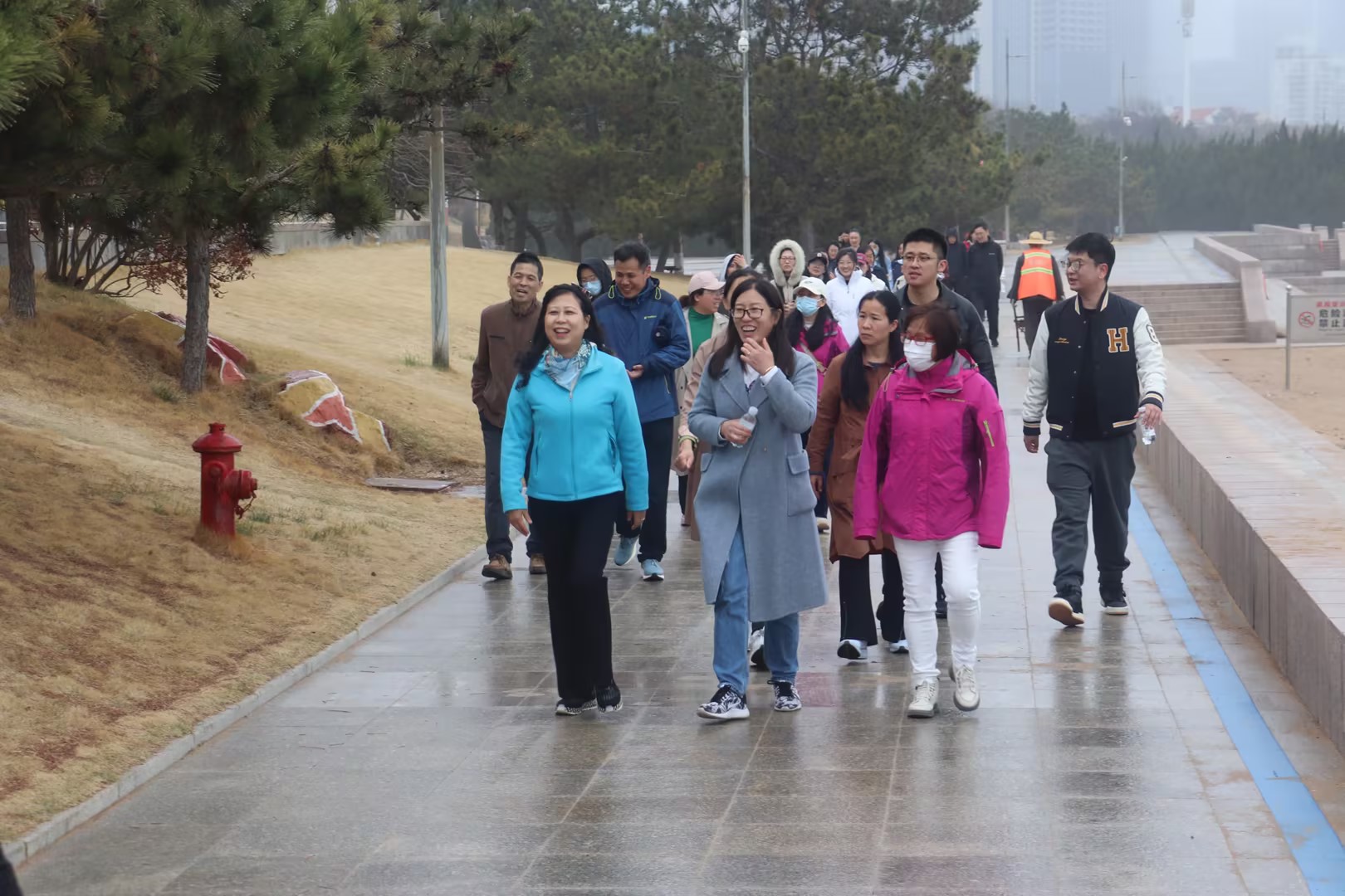早春青岛,阴雨绵绵,老师们精神饱满、情绪高涨,大家按照既定规划路线,同行向前,奔着本次健步行的终点出发。健步途中,老师们说有笑,其乐融融,大家一边欣赏海岸线的美景,一边享受健步走带来的轻松活力,并在健步走的过程中积极讨论并交流工作上的问题。到达青岛雕塑园后,每位老师领取红色小国旗进行拍照打卡,随风飘扬的中国红再次凝聚起全院教师的强大自豪感和信心。