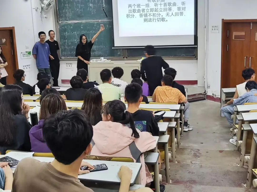 第二部分为“心有灵犀,你划我猜”和只言片语寻找“曲”游戏。活动中,来自不同班级的同学充分发挥自己的想象力,展现了同学们之间的默契度,也增进了同学们之间的友谊。在听歌识曲中,同学们激烈竞争,展现风采,在欢声笑语中放松了身心,也充实了周末生活。