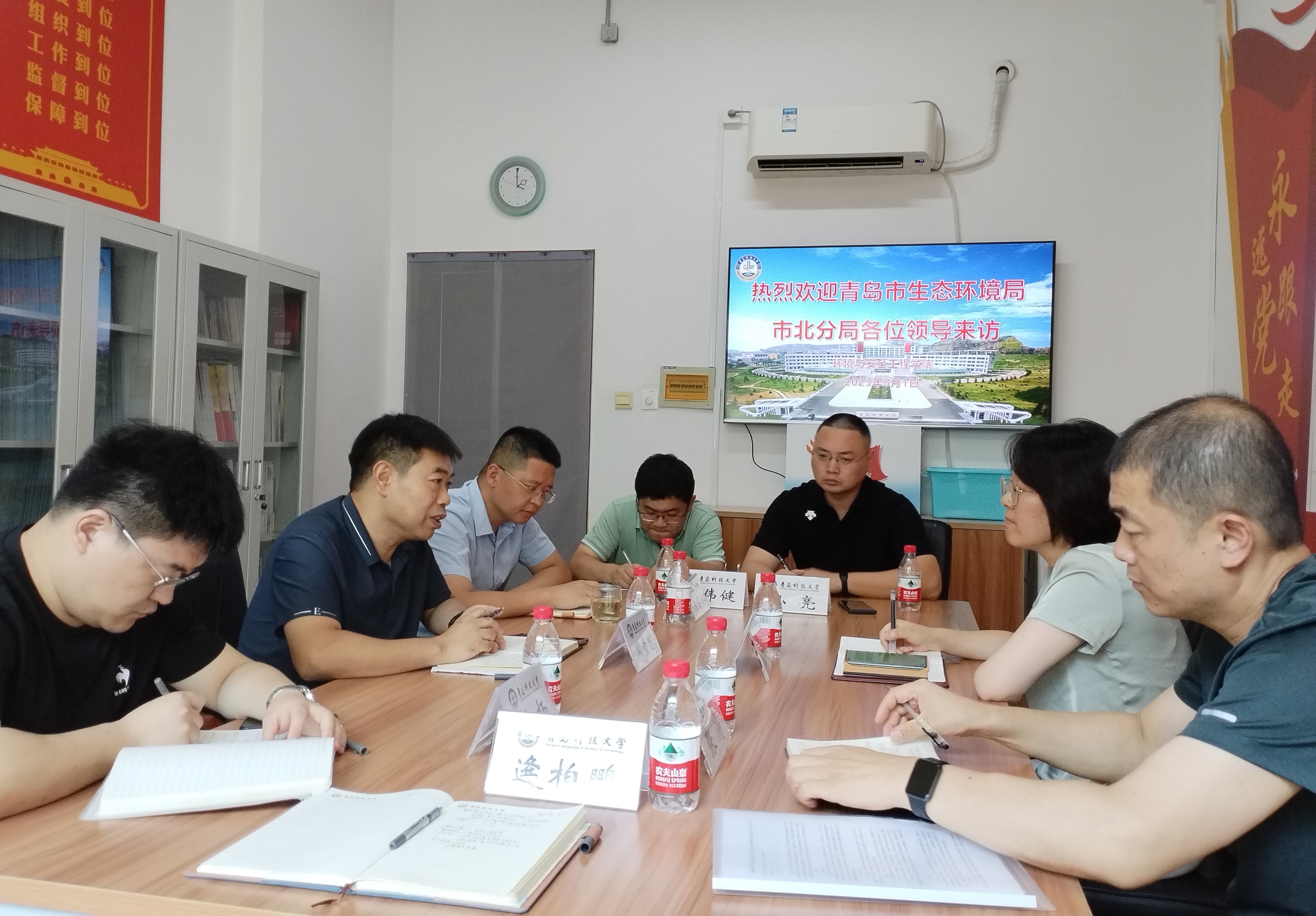 8月1日,青岛市生态环境局市北分局生态环境监控中心宣肇菲一行莅临学院开展调研座谈工作,学院副院长周贵忠、党总支副书记兼副院长贾可好出席座谈会。座谈会由学院党总支副书记兼副院长贾可好主持。