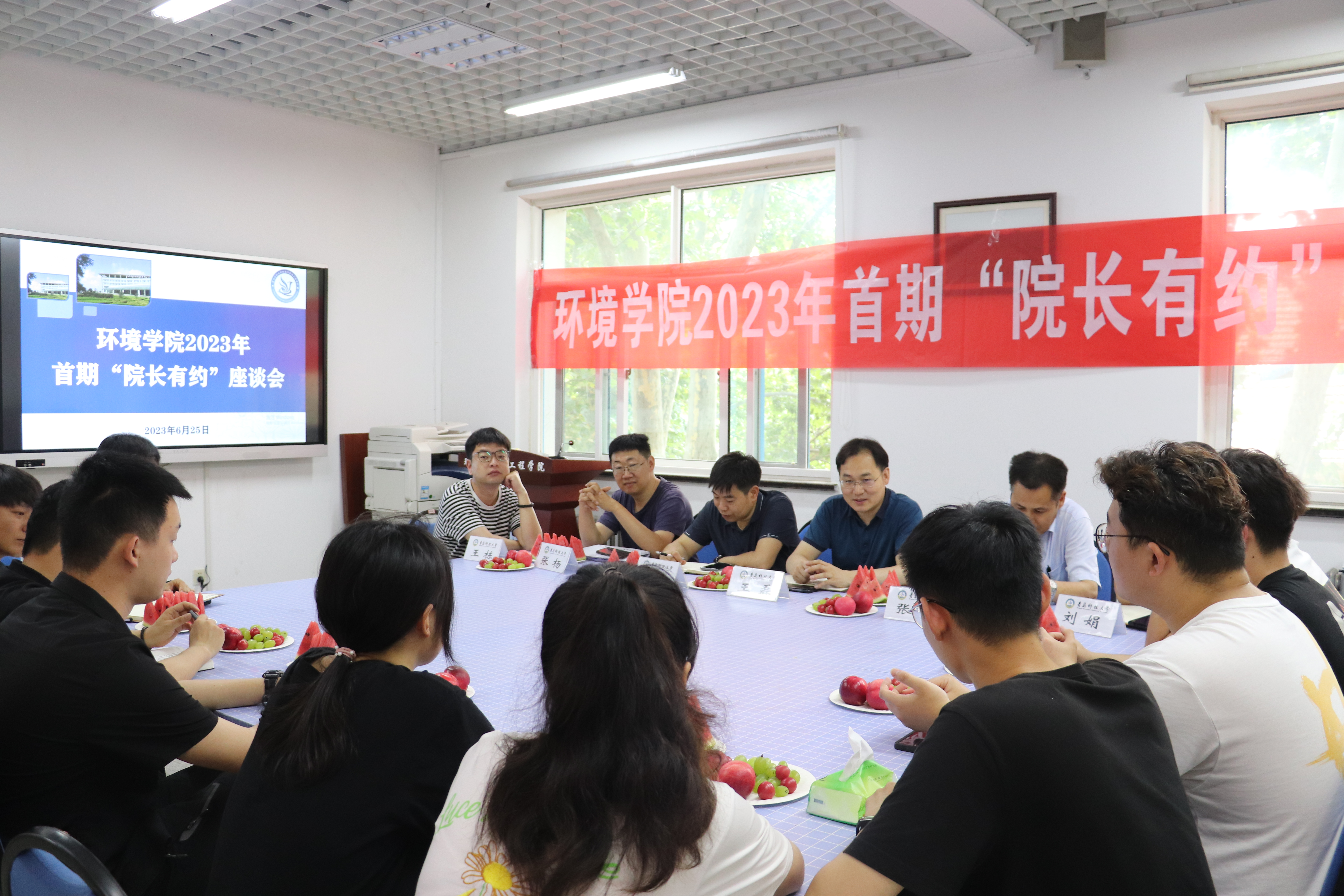 为推动学习贯彻习近平新时代中国特色社会主义思想主题教育走深走实,促进学院与毕业生之间的深入交流,倾听毕业生对学院教学、科研、管理、服务等方面的心声,贴近学生需求,关心学生成长,促进学院发展。6月26日下午,环境学院在学院楼3015会议室举行首期“院长有约”座谈会。院长王磊,副院长周贵忠、张峰,教研室主任、毕业班辅导员以及2023届毕业生代表参加本次座谈。