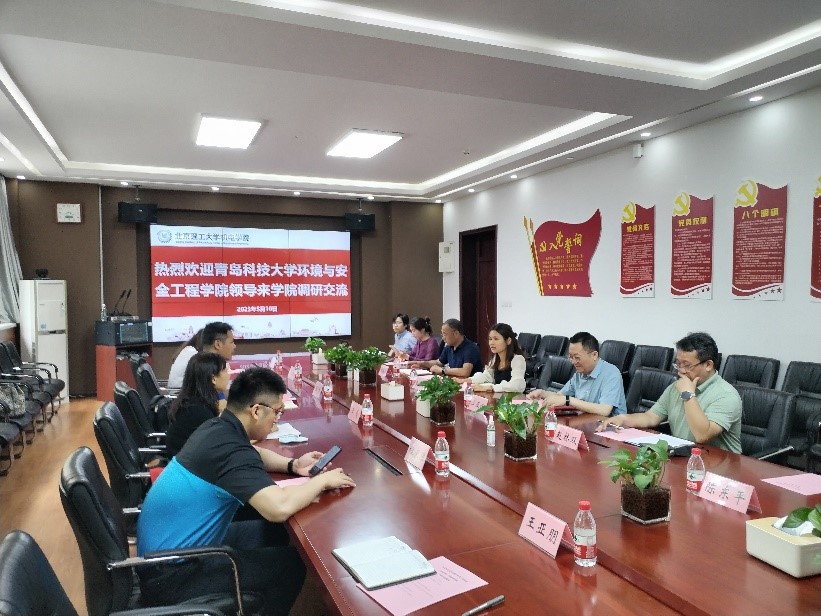 在中国石油大学(北京),安全与海洋工程学院党委书记孙为、副院长郑文培、党委副书记赵凯等领导和老师参加了交流。王青介绍了我院党建情况,张峰详细介绍了学院安全学科专业的发展现状、学科人才引进政策,并对石油大学长期以来对我院学科专业的支持表示感谢。孙为对我院在党建、学科专业建设等方面取得的成绩给予充分肯定,郑文培从师资队伍、学科平台、科学研究、人才培养等方面详细介绍了学院情况。叶迎春介绍了安全党支部在突出思想引领、发挥堡垒作用、聚焦主责主业等党建方面的工作方法、激励机制及所获成果。