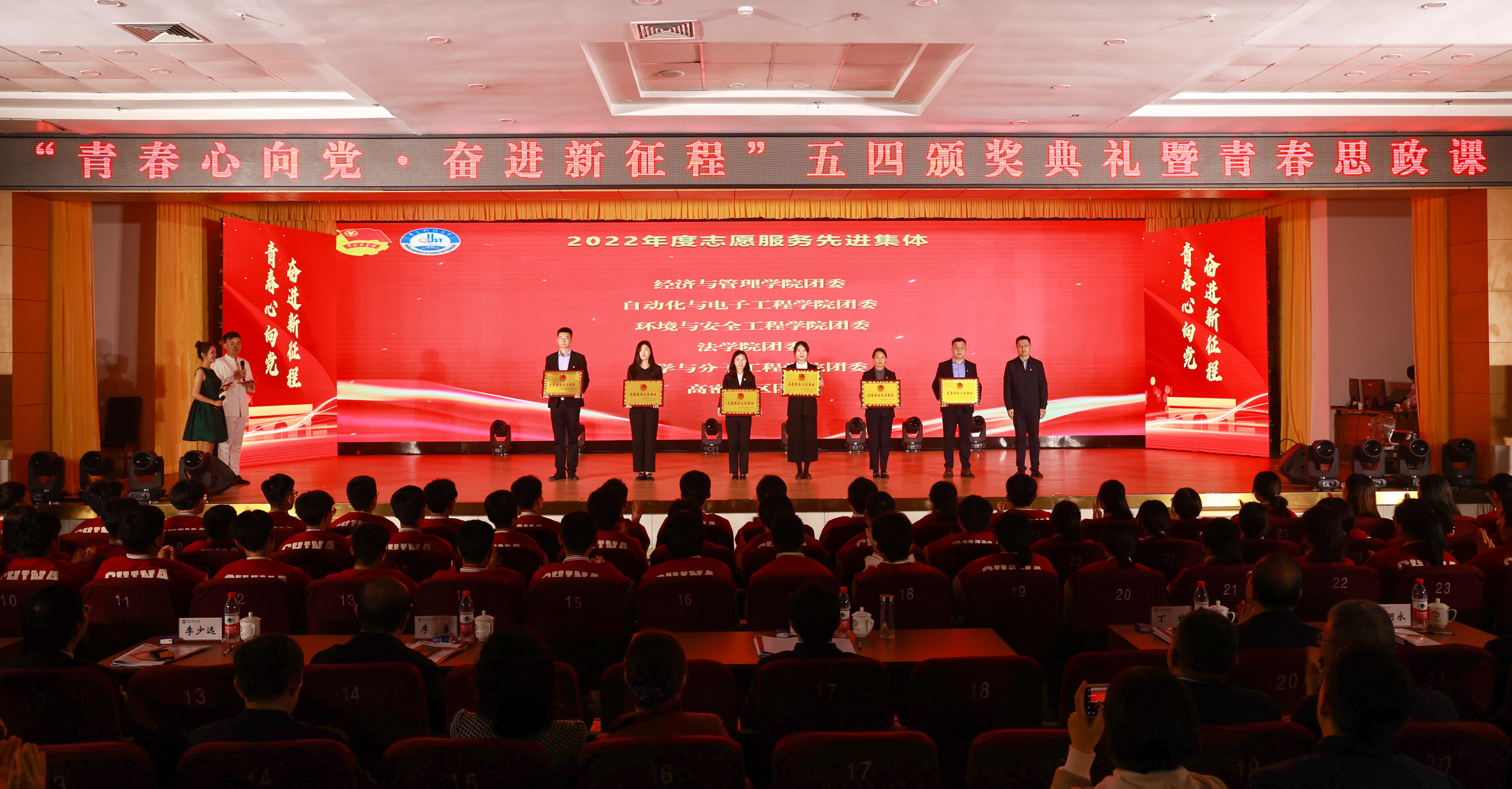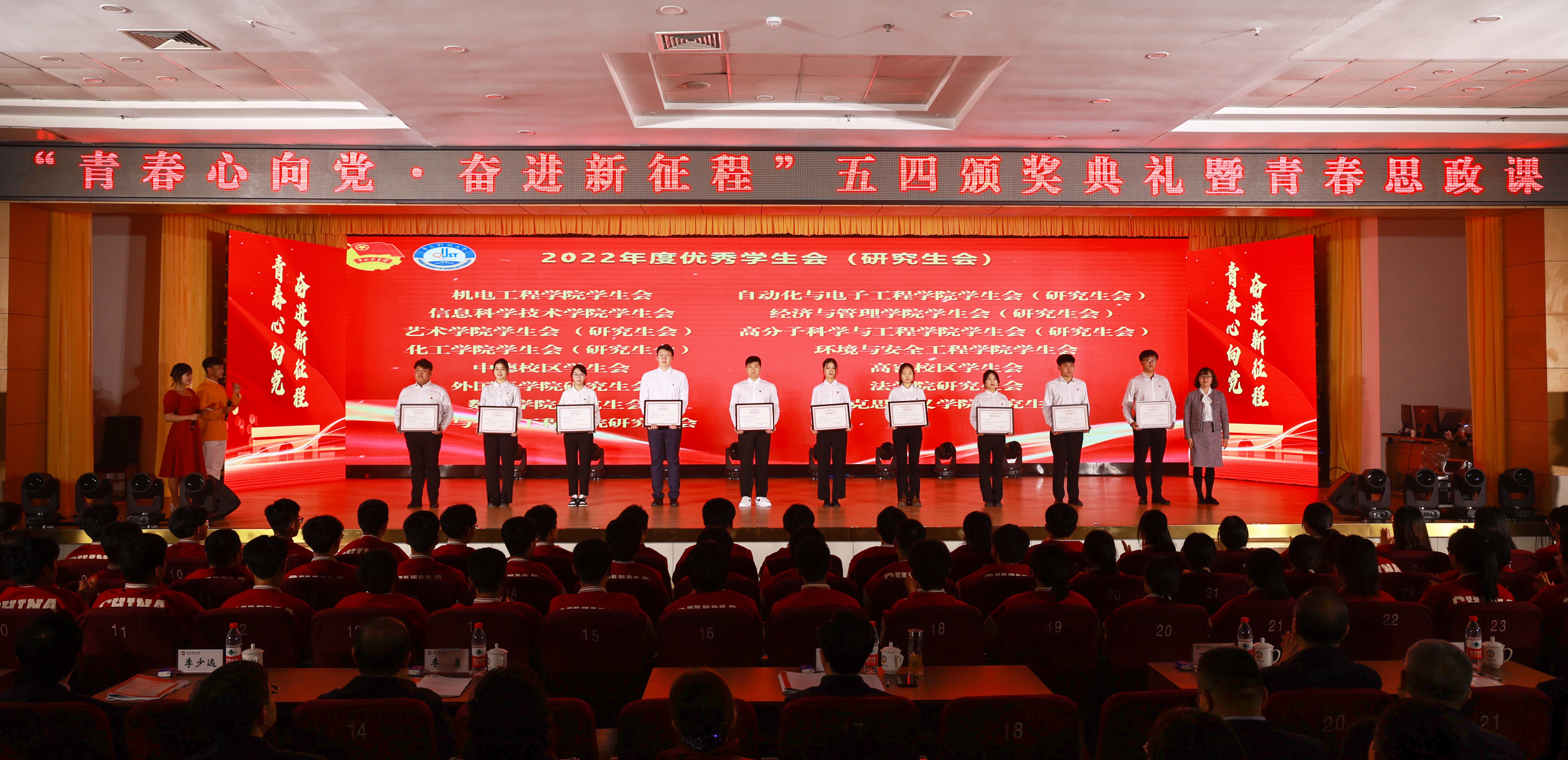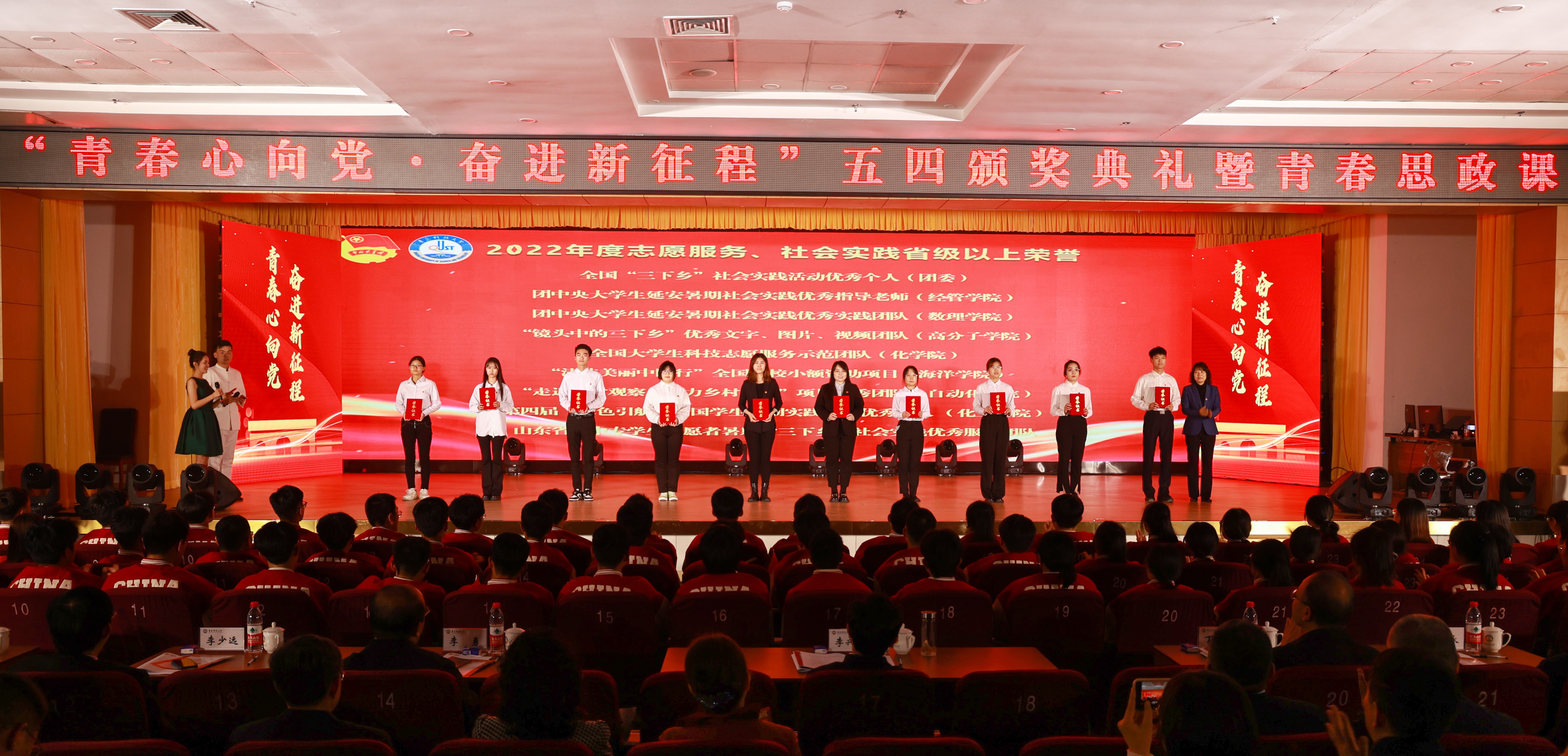 5月4日下午,学校2022年度“青春心向党 奋进新征程”五四颁奖典礼暨青春思政课在崂山校区第二报告厅举行。校领导,学校机关各部门、各学院负责人及百余名青年大学生共同参加这一堂思政大课。