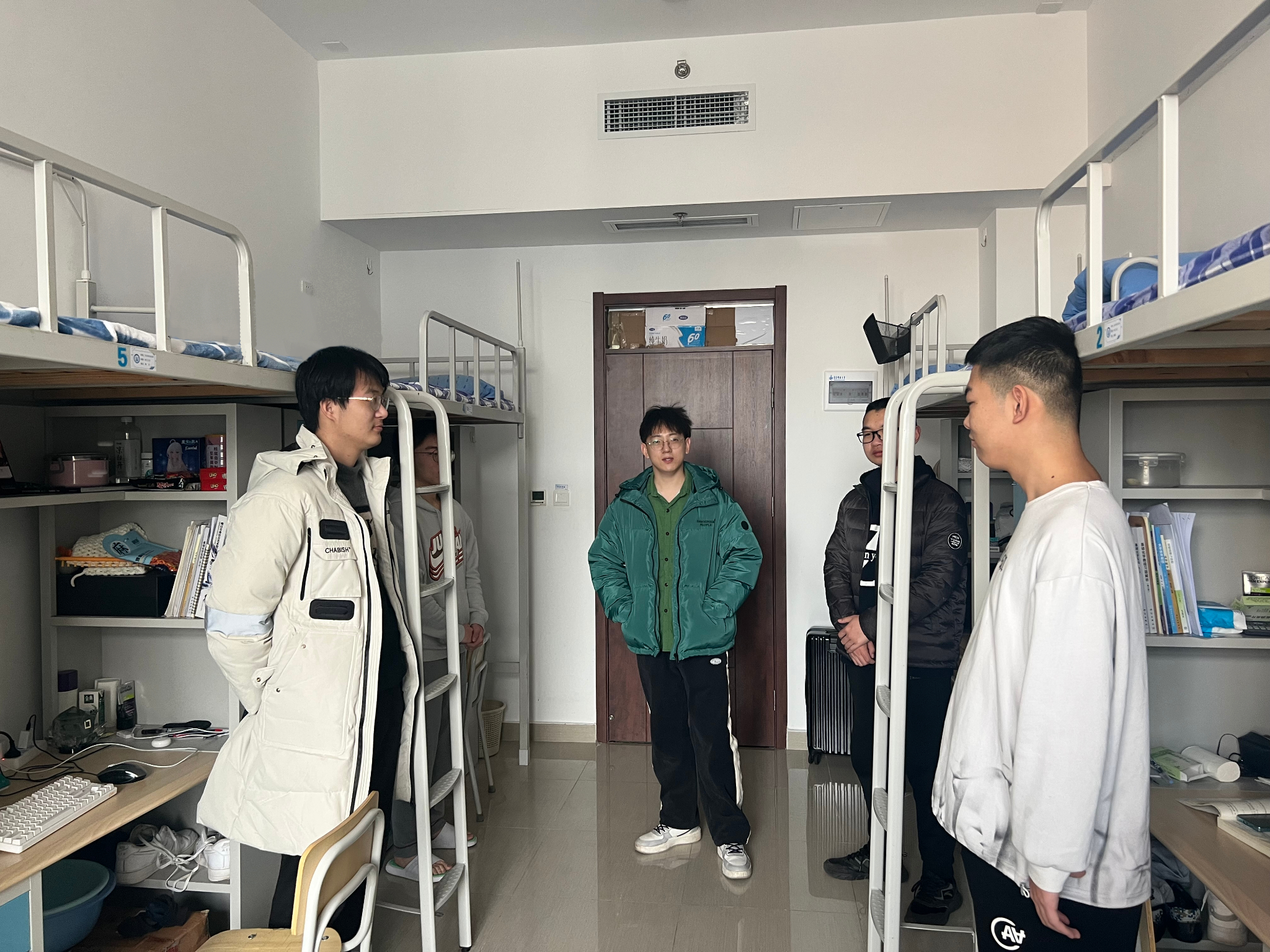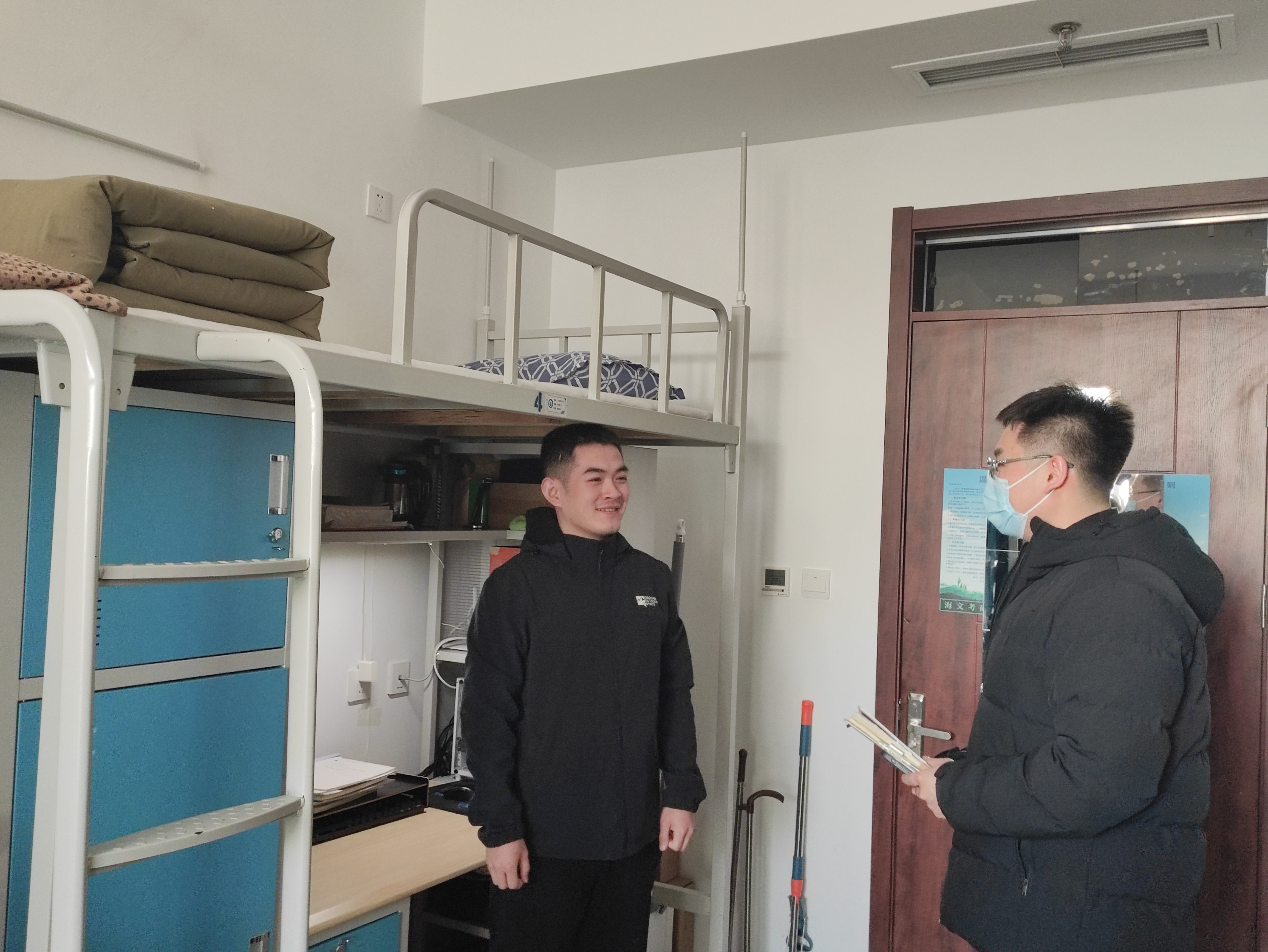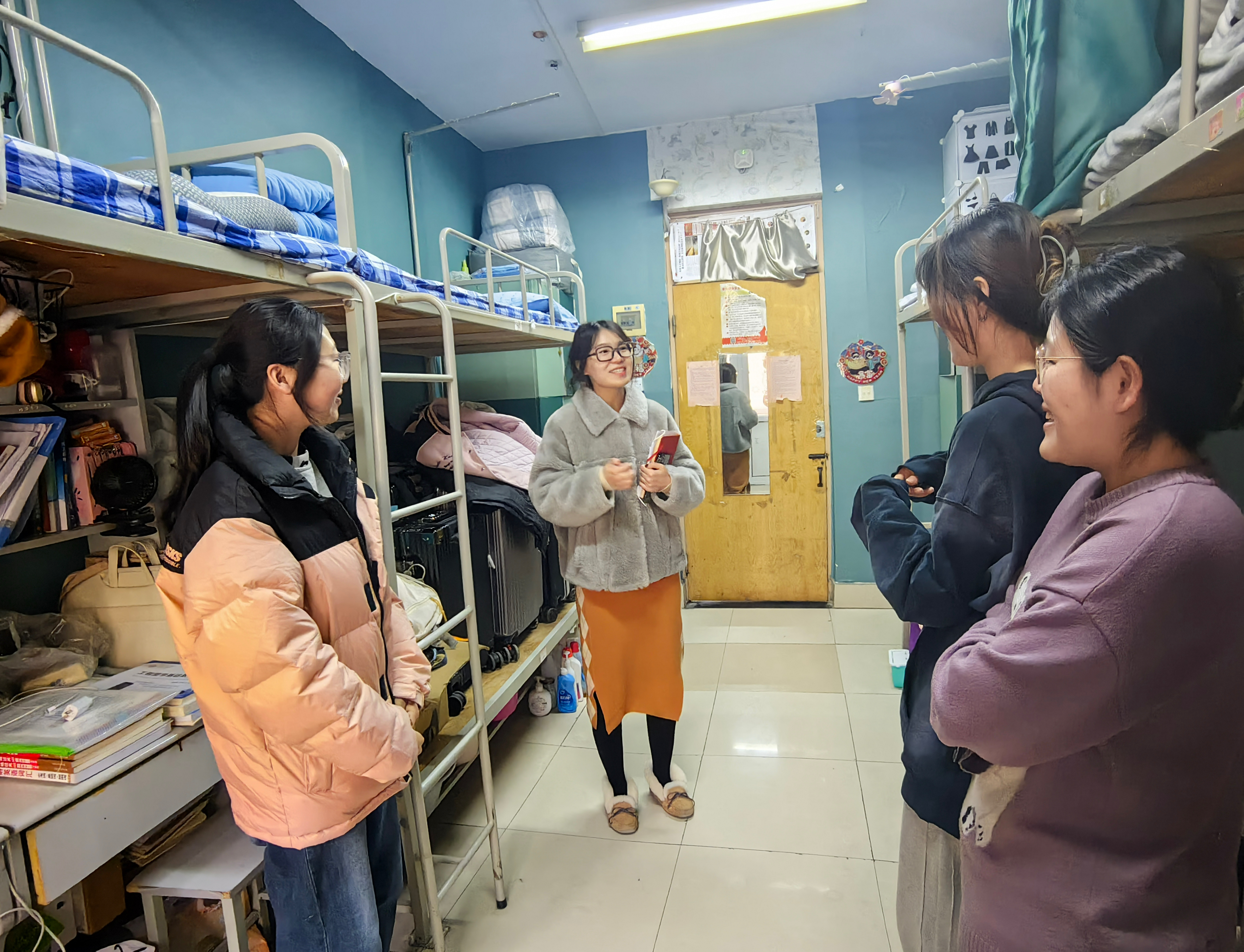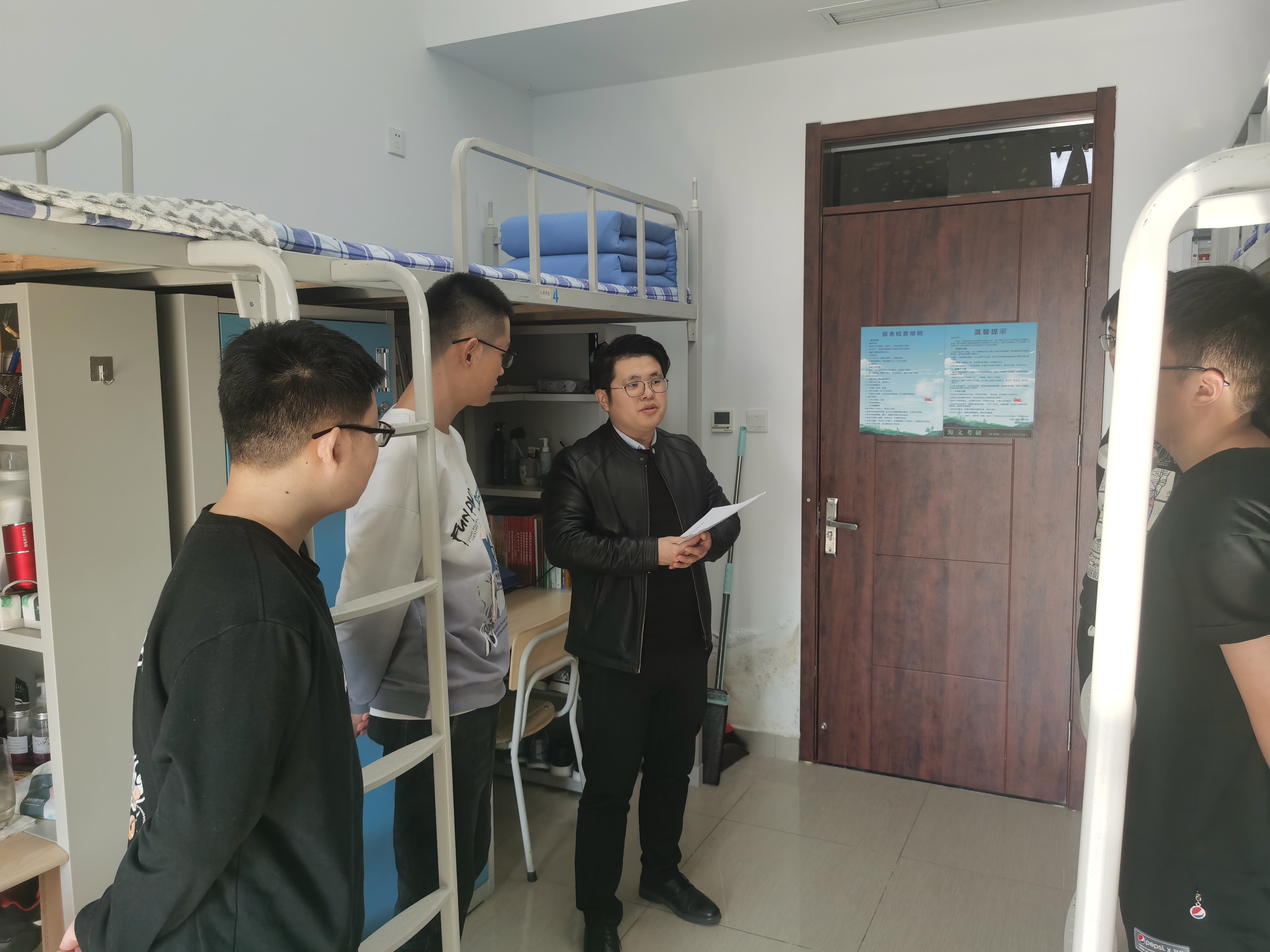 检查过程中,辅导员老师们针对宿舍卫生和可能存在的安全隐患等细节对同学们提出了建议和要求,并与学生进行深入交流,了解学生的思想动态、学习生活状况和期末考试复习情况,有效增强了学生回归校园、宿舍后的集体归属感。
