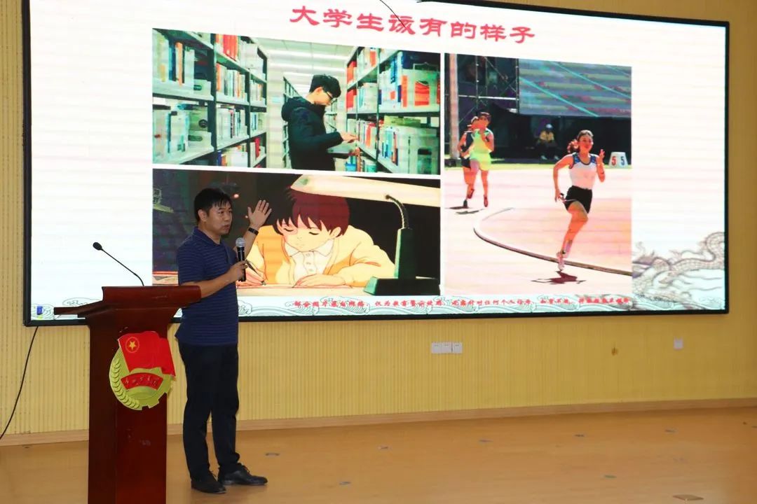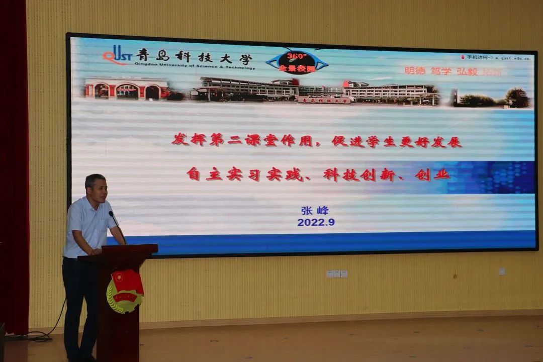 周贵忠就本科生培养、毕业达成、学位授予等方面进行详细介绍。张峰就大学生实习实践、科技创新、创业等方面进行了专业教育。