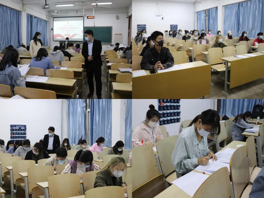 初赛阶段采用线下笔试开卷的方式进行,主要考查团支部委员对党团知识、时事政治及学校政策的掌握程度,学工办主任兼团委书记钟硕老师进行现场监考。