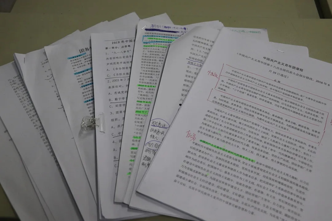 考场上,同学们精心准备了自己做的笔记、团支部工作手册、学生手册等各种相关材料,在紧张的考试中夯实自身基础,每位团支部书记都认真对待此次比赛,最终都交上了令自己满意的答卷。