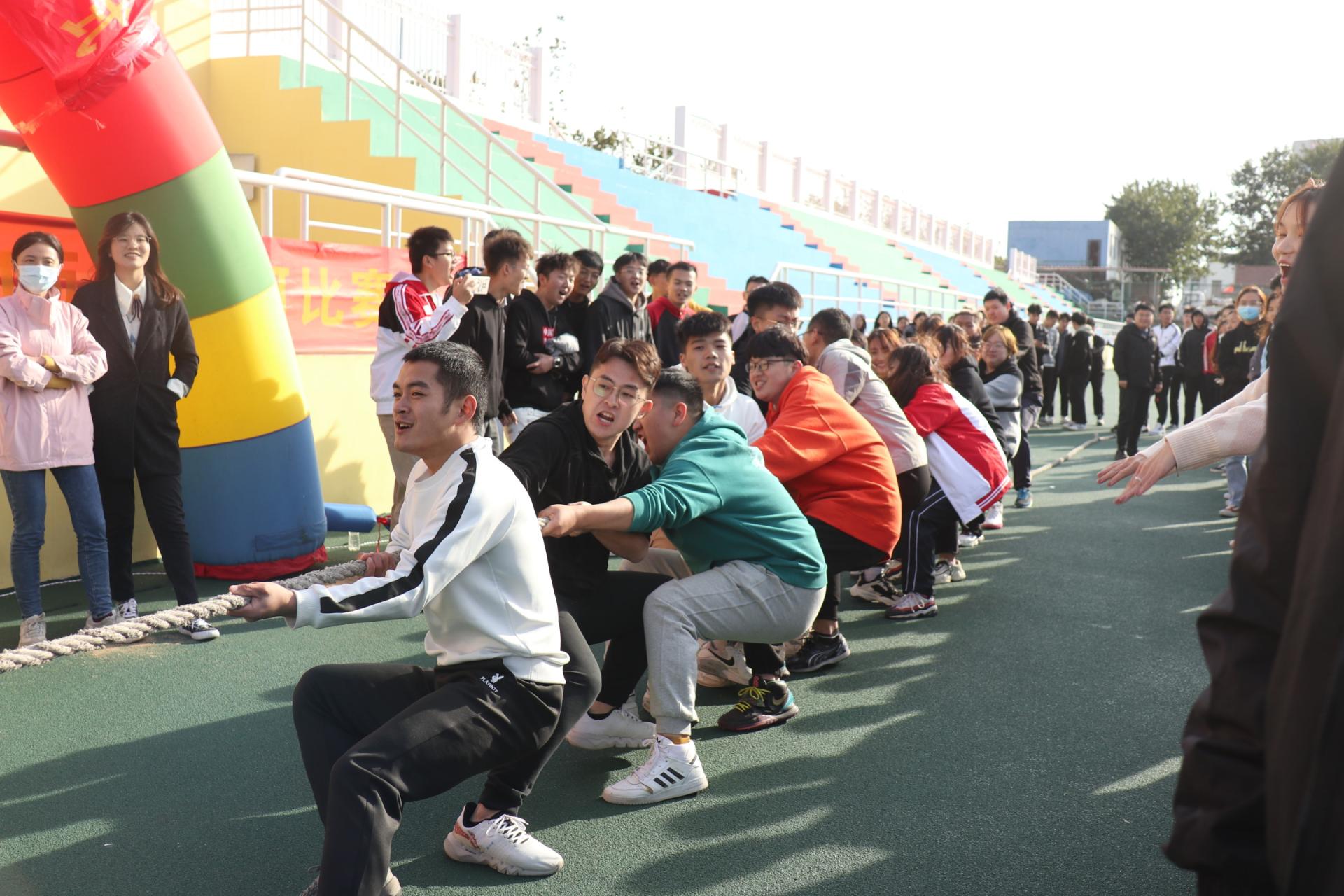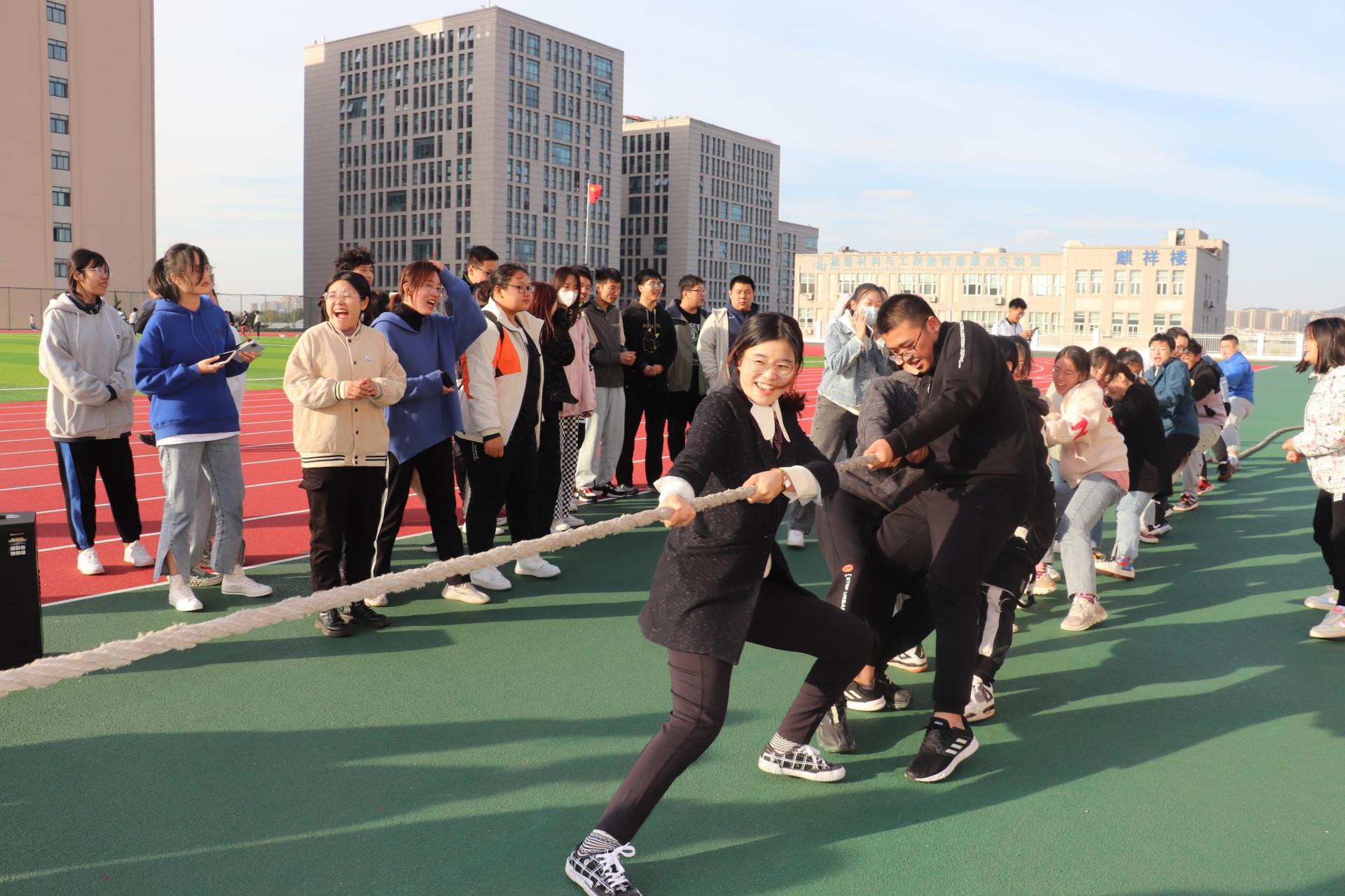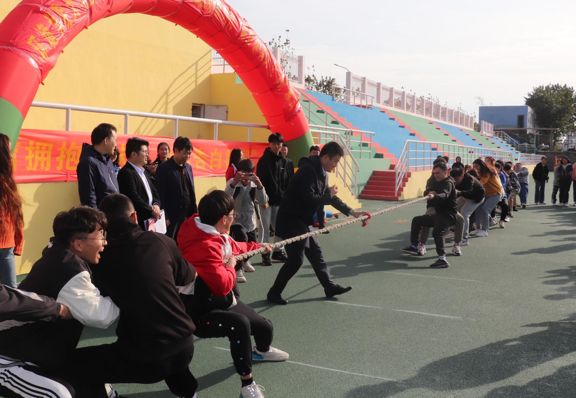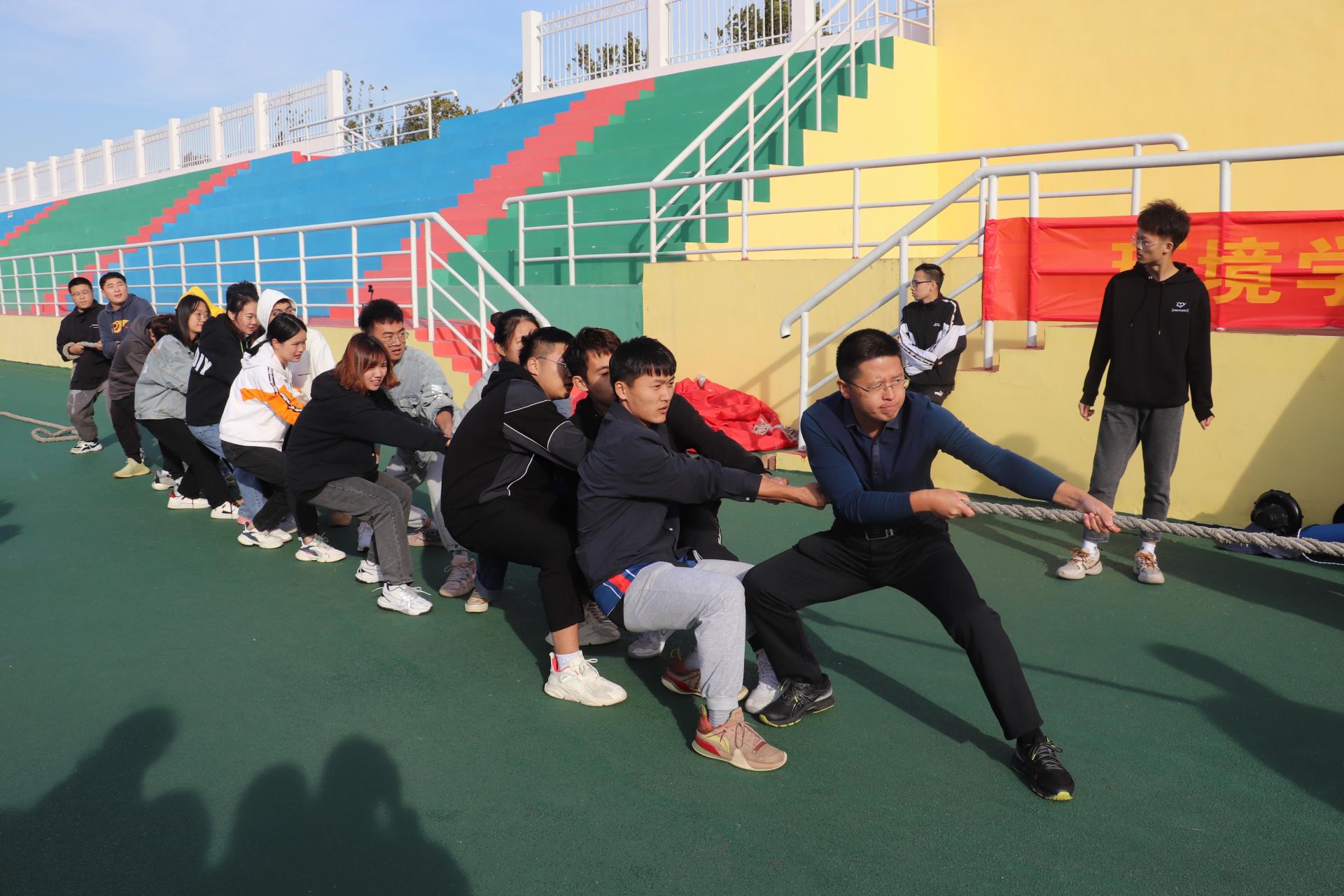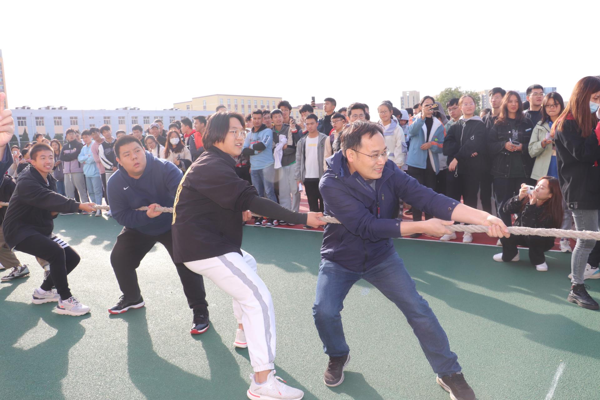 环境学院大学生体育联盟负责学院院级和班级层面体育联赛的组织实施,下设6个竞技类和兴趣类协会,通过采用“必选+自选”的形式,覆盖全体2021级学生和高年级学生体育骨干。接下来,学院将开展运动会、篮球赛、足球赛、拔河比赛、跳绳比赛、排舞比赛等体育赛事活动,打造以学院联赛为龙头、班级竞赛为基础的体育赛事规模,努力推动构建德智体美劳“五位一体”协同育人体系和长效机制。在开幕式上,学院举办了男女5人制400米接力赛和师生拔河比赛,学院党政领导、辅导员、班主任与2020级、2021级16个班级的同学们一起参赛。