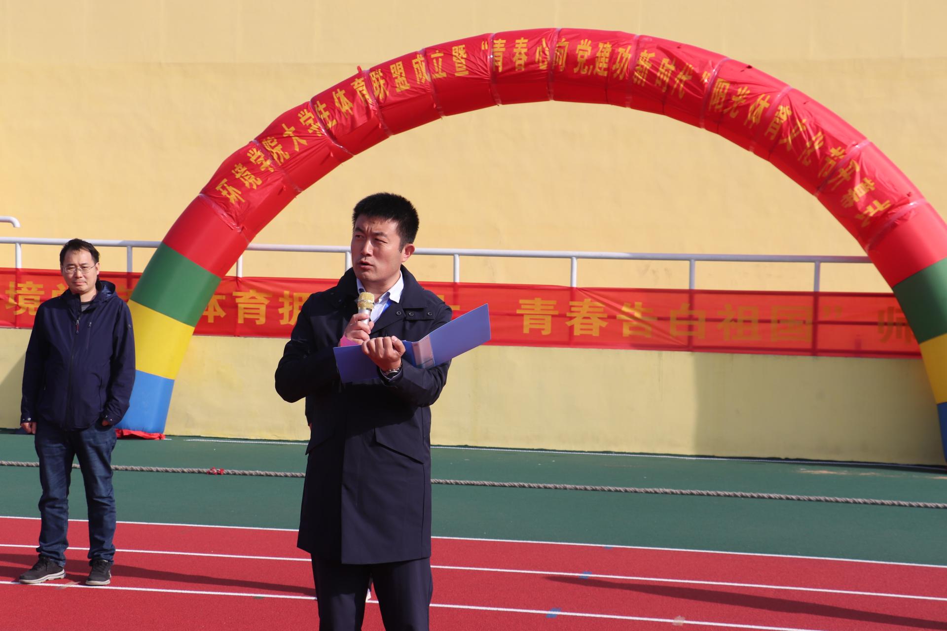为落实学校体育综合改革有关要求,助力学校、学院工作高质量发展,培养德智体美劳全面发展的时代新人,10月19日,环境学院大学生体育联盟成立大会暨“青春心向党,建功新时代”阳光体育文化节于东山操场举行。校团委负责人,环境学院党政领导,全体专兼职辅导员,各班班主任以及2020级、2021级400余名学生参加活动。