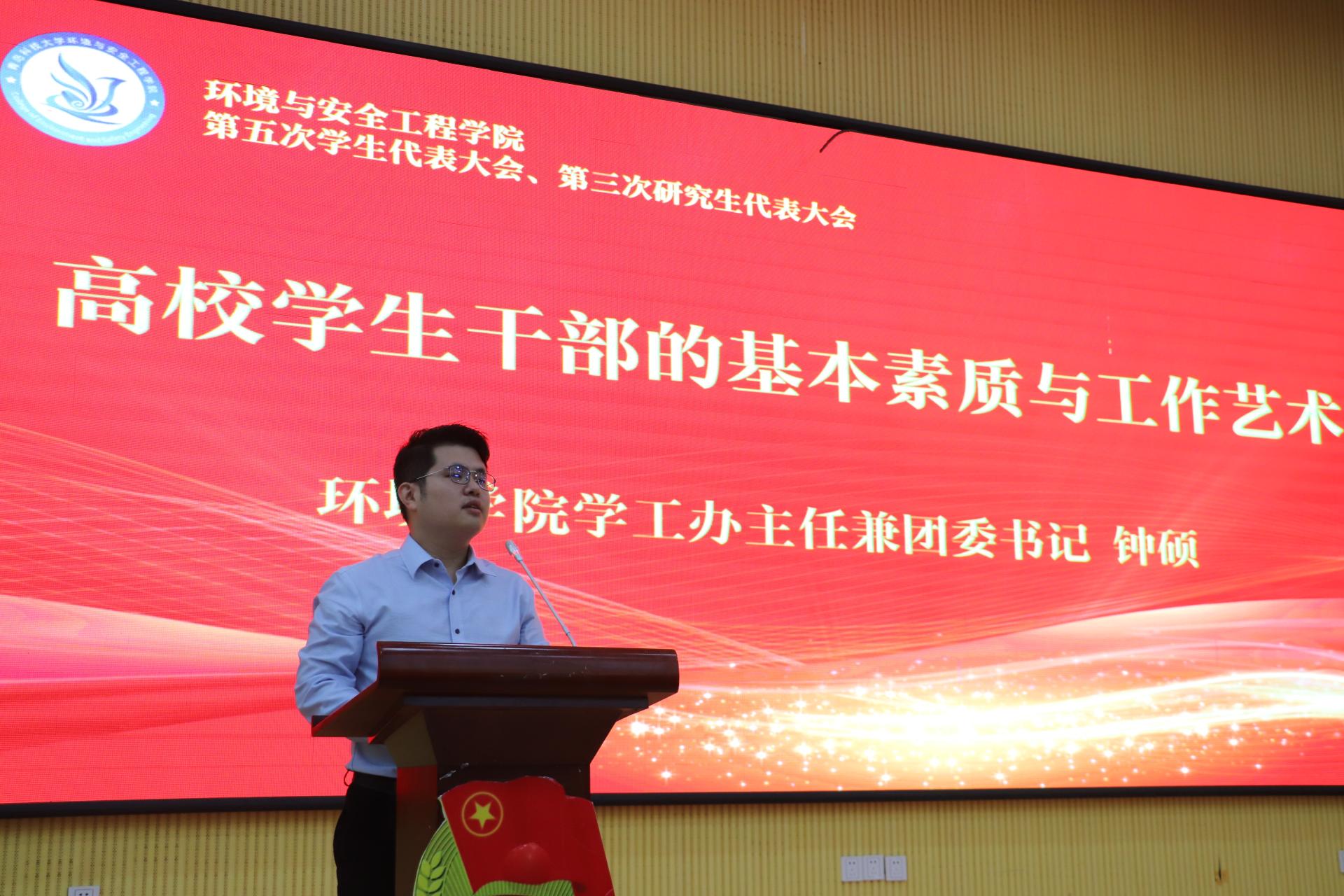 日前,环境学院开展2021年秋季学期青马工程培训班暨第五次学生代表大会、第三次研究生代表大会。环境学院党总支副书记兼副院长贾可好,学院学工办(团委)全体教师,本科生、研究生各班学生代表参加本次会议。