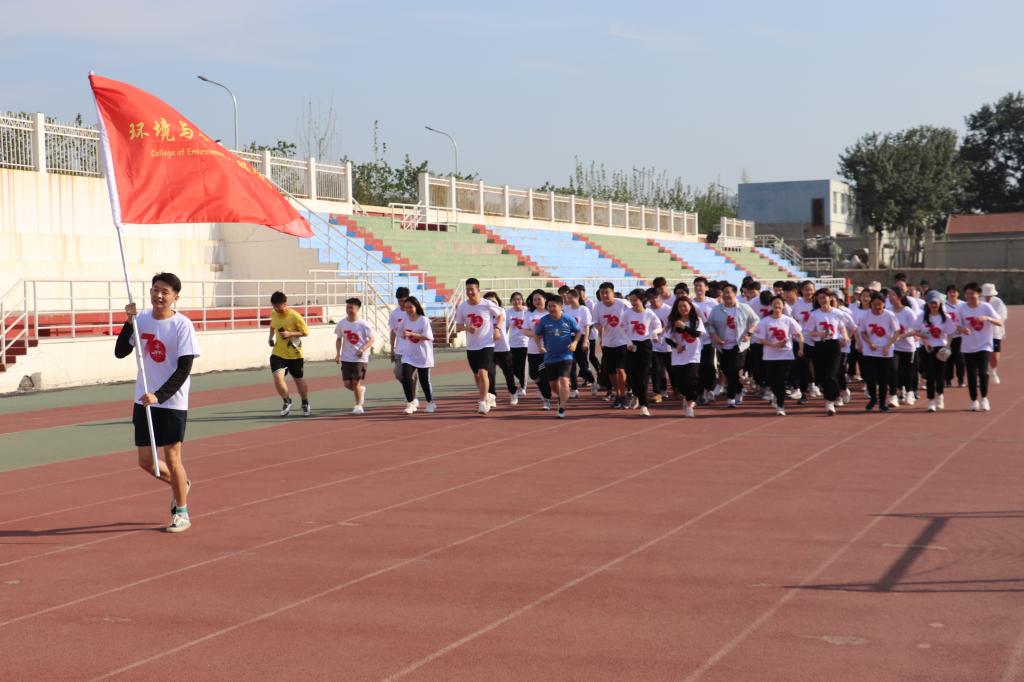 在党史学习教育大背景下,为落实体育综合改革政策要求,增强大学生身体素质,同时祝毕业生一帆风顺,前程似锦,6月6日下午,环境学院于东山操场举行“环聚群英,跃无止境”校园奔跑活动。环境学院2017级毕业生学生代表,2018级、2019级、2020级学生组织代表共80余人参与本次活动,环境学院学工办主任钟硕老师受邀参加活动。