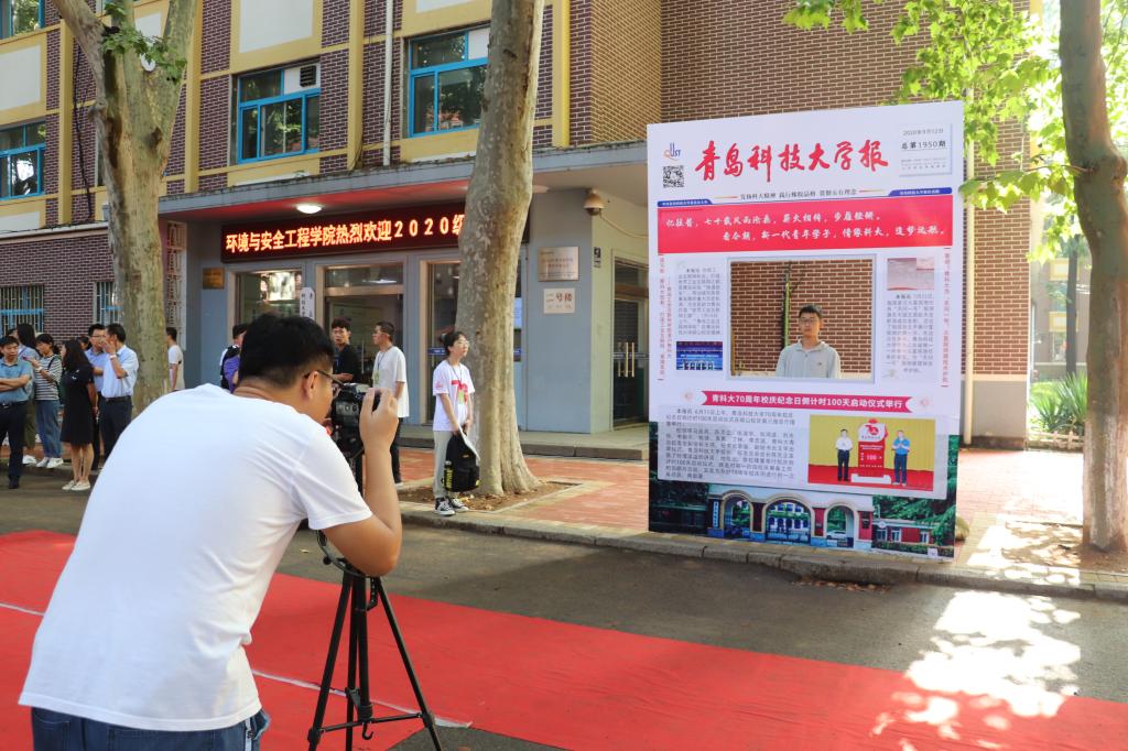 “科大校报”谱新篇。为了提升学生爱校荣校意识,弘扬“科大精神”,践行“橡胶品格”,传承“科大家风”,学院制作了一幅3m*2m的“英国威廉集团报”合影板。合影板以学校校报为模板,报刊为“总第1950期”,表示学校建校于1950年。中间镂空位置供新生拍照留念,并配有“忆往昔,七十载风雨沧桑,薪火相传,步履铿锵。看今朝,新一代青年学子,情缘科大,追梦远航”的宣传标语。同时,合影板还将“工业互联网学院落户青科大”、“学校为‘天问一号’保驾护航”、“校庆100天倒计时”等2020年学校重大新闻融入,增强新生对学校的认同感、归属感和自豪感。