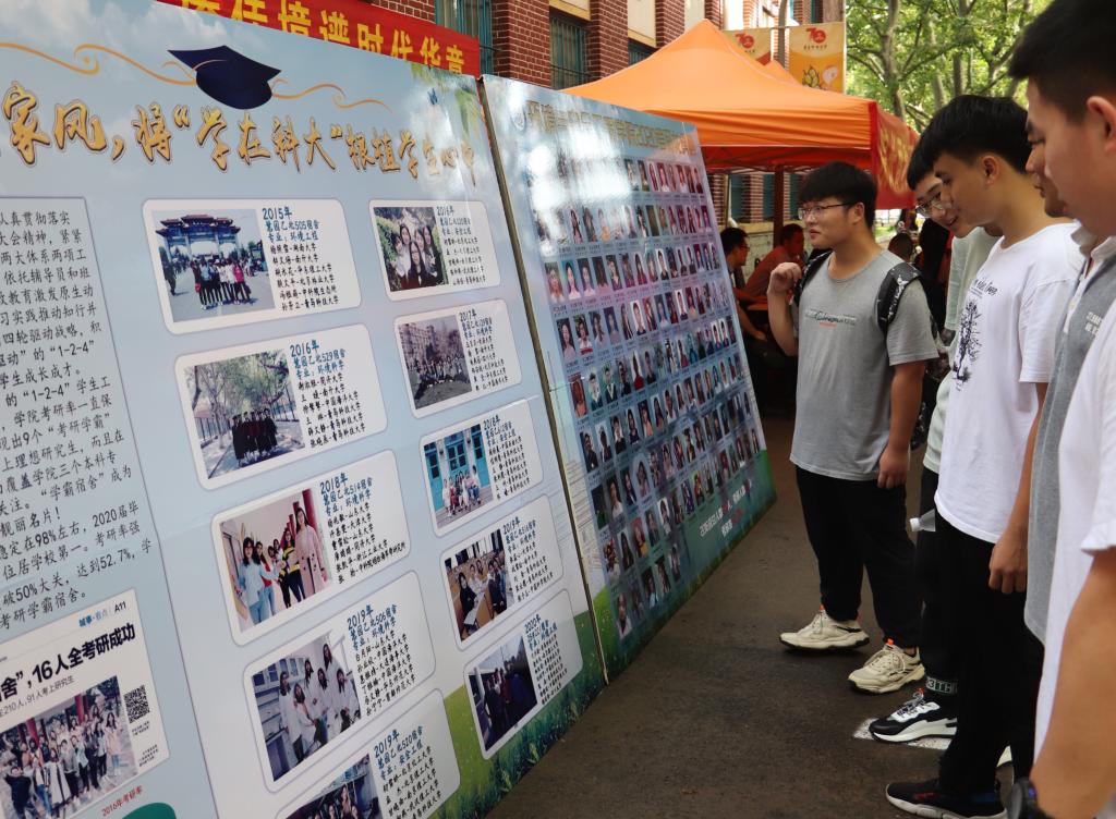 “学在科大”重基础。学风是大学精神的集中体现。环境学院连续6年涌现出10个考研“学霸宿舍”,“学霸宿舍”已经成为环境学院的一张靓丽名片。为此,学院梳理了六年来的考研“学霸宿舍”,制作了“学霸宿舍”风采展,以便激励新生在大学中奋发向上,在入学之初将“学在科大”的种子根植在学生心中。