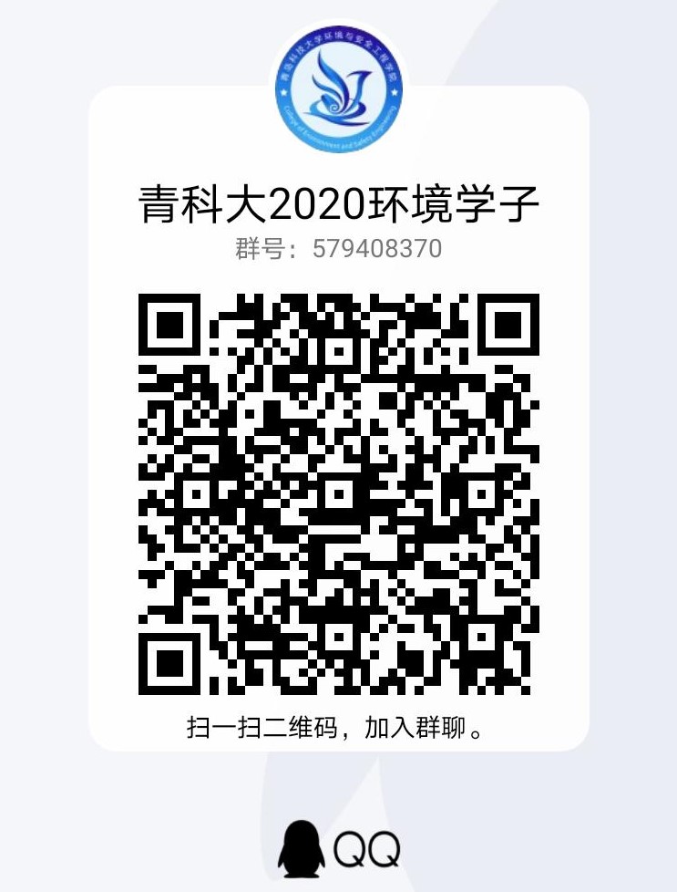 为做好2020级本科生入学报到以及后续教育引导和管理服务工作,更加快捷地传递学校学院年级各类资讯,学院建立了“青科大2020环境学子”官方QQ群和微信群,各位新生可扫描下方二维码添加进群。