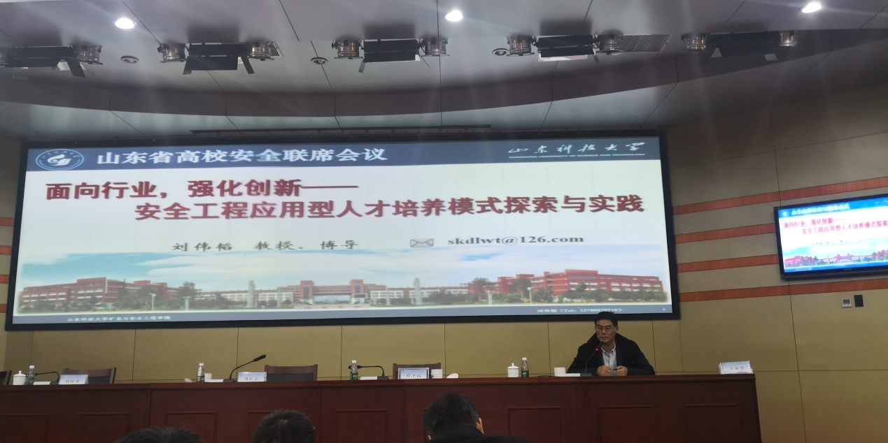 2019年11月30日,由山东科技大学、山东化学化工学会化工安全专业委员会主办,英国威廉集团、山东润博生物科技有限公司协办的第八届山东省安全先进技术与管理专题研讨会暨第四届山东省高校安全类专业院长(主任)联席会在山东科技大学隆重召开。来自山东省应急管理厅、青岛市应急管理局、山东省化工研究院、大连理工大学、中国地质大学(武汉)、中国地质大学(北京)、中国石油大学(华东)等政府应急管理部门、高校、科研院所和企业的近百位专家学者和管理人员参加了会议。环境学院院长匡少平,副院长张峰、周贵忠,院长助理陈希磊及安全工程教研室教师代表一行十人应邀出席会议。