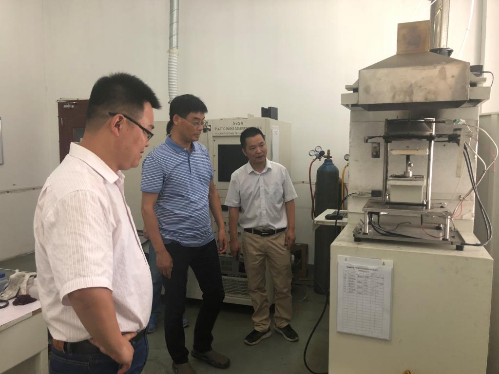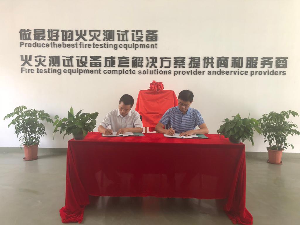 签约结束后,匡少平院长一行,在孙成绘总经理陪同下参观了公司实验室、生产车间。双方充分肯定了公司产品的技术水平与专业水准,对公司做好技术创新、在火灾测试仪器行业做专做精、火灾测试仪器与火灾测试同时高效发展等方面提出了诸多宝贵意见。