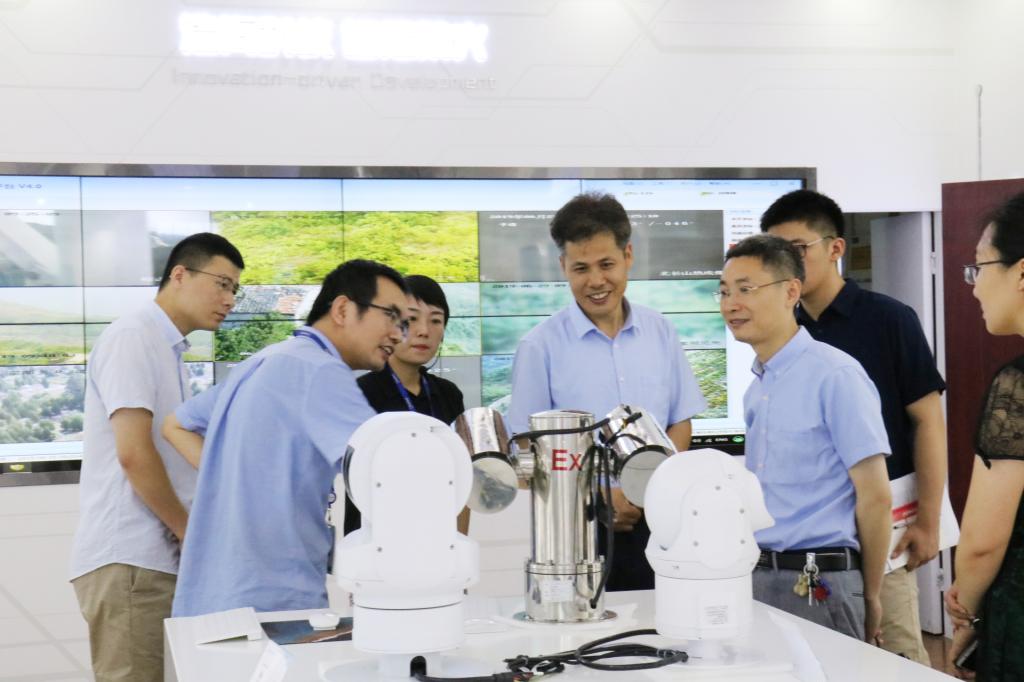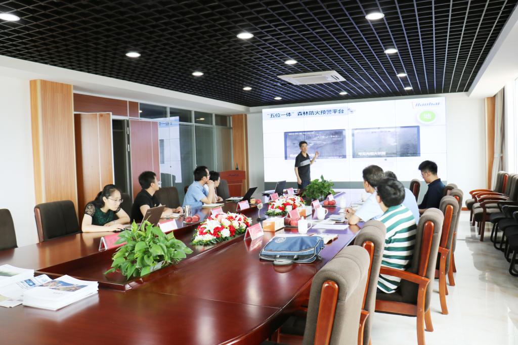 到访人员先后参观了公司产业园区、产品演示中心、技术实验室、研发中心、生产中心、指挥中心等,重点了解公司自主研发的应急产品、应急技术成果及市场应用。公司总工程师邵长久介绍了公司的整体情况、产品技术及业务领域,展示了浩海自主研发应急产品包括:防火预警一体机、无人机及智能语音卡口等硬件产品,实时演示了森林防火预警监控平台、慧眼•卫星遥感火情监测系统等软件产品。