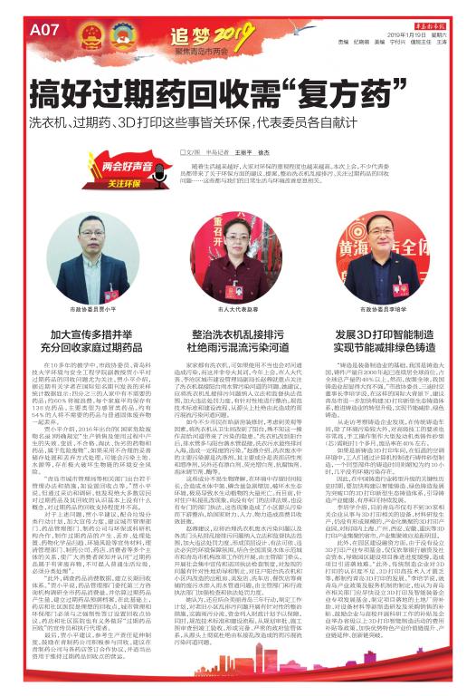 2018年10月,贾小平组织了课题组学生(包括环境学院2015级和2016级学生),走入海水淡化企业,积极参与调研,获得一手资料。在2019年1月18-21日的青岛市政协十三届三次会议上,提交了《关于支持青岛市海水淡化产业发展的建议案》,受到了半岛网、大众网、凤凰网等多家媒体采用并报道。