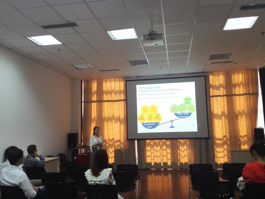 会议中,本科四年级学生张蓝心以“Pinch Analysis for Targeting the Desalination Water Price Subsidy”题目,全英文系统介绍了过程集成方法在环境领域的进展和最新应用,得到了在场同行的广泛赞同。张蓝心也成为参加本次会议并做口头报告的唯一一名本科学生。