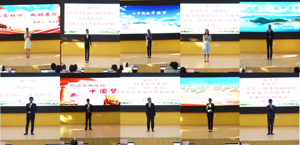 演讲比赛分“主题演讲”和“即兴演讲”两个环节。在主题演讲中,比赛选手紧紧围绕主题,用丰富的内容、生动的语言从不同角度诠释了对“中国梦”的憧憬和向往,并从自身出发阐述自己的“中国梦”以及实现自己“中国梦”的方法路径,体现了环境学子“敢于有梦 勇于追梦 勤于圆梦”的价值追求。在即兴演讲环节,大家分别以“青春”、“梦想”、“责任”为关键词,围绕所选题目展开论述,以青年学生的视角阐释“中国梦”、“青春梦”,为在场学生起到了很好的示范引领效果。