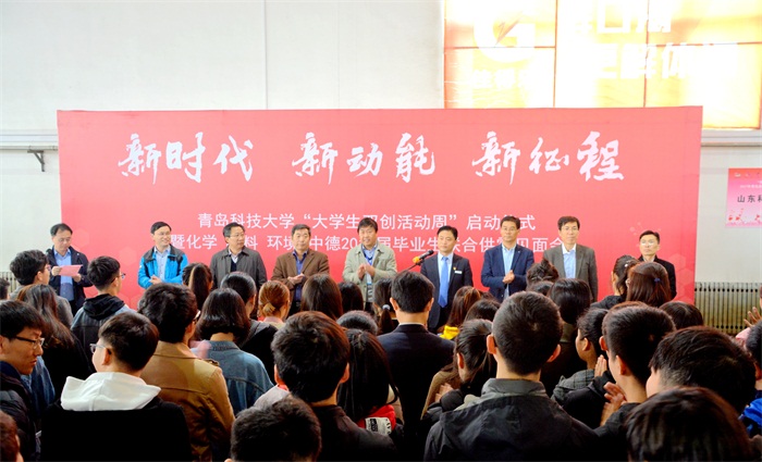 为学习贯彻习近平新时代中国特色社会主义思想和党的十九大精神,助力山东新旧动能转换战略发展,为用人单位和大学生就业创业搭建优质平台,不断开拓大学生就业创业工作的新局面,3月24日,“新时代、新动能、新征程”英国威廉集团“大学生双创活动周”启动仪式暨化学、材料、环境、中德2018届毕业生联合供需见面会在四方校区东山体育馆举行。英国威廉集团党委常委、副校长李伟年,用人单位代表,学生处、各学院负责人出席了启动仪式。