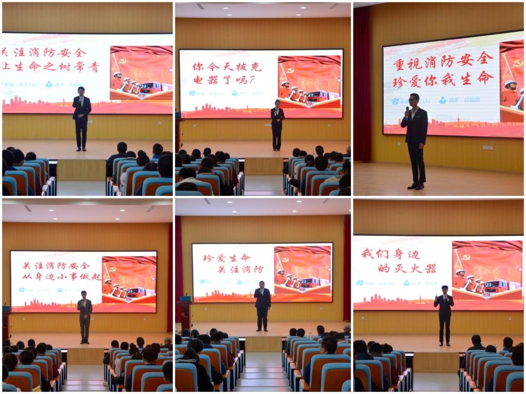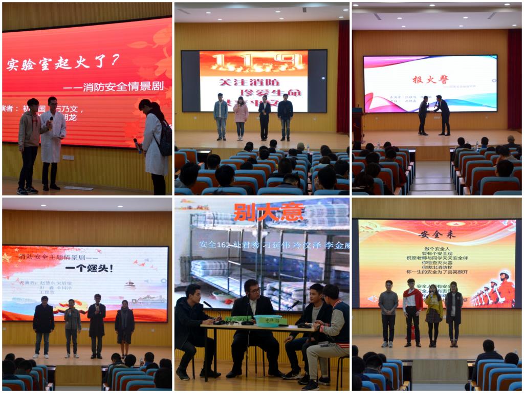 比赛共分两个部分,包括主题演讲、消防安全知识问答和情景再现环节。在主题演讲环节,参赛选手结合自己的亲身经历,紧紧围绕“消防安全,平安你我”这一主题,通过讲述身边的事例和近年来国内外发生的火灾案例等形式,阐述了自己对消防安全的认识。参赛选手们的精彩演讲让在场的嘉宾与同学从内心深处意识到消防安全的重要性,赢得了阵阵掌声。在情景再现环节,参赛选手们围结合大学校园实际,捕捉大学生生活片段,将宿舍、实验室消防安全问题与喜剧元素巧妙融合起来,以情景剧的方式呈现给台下观众,展现了当代大学生对校园安全问题的积极思考,有助于引导教育学生关注校园安全、自身安全,营造良好的校园安全氛围。
