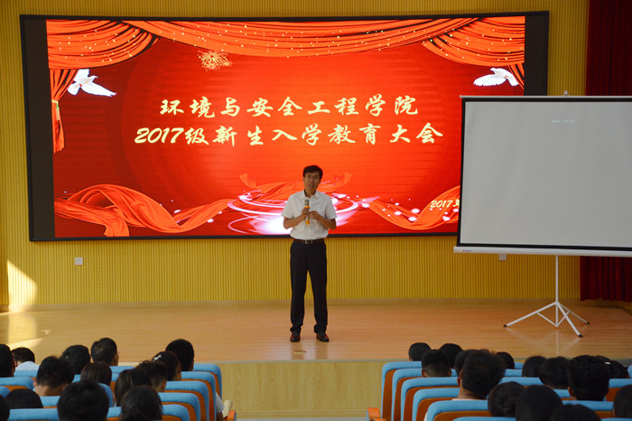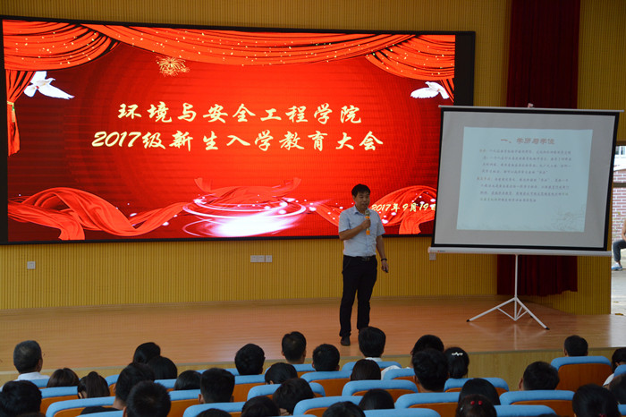 会上,环境学院院长匡少平就学校与学院的基本情况展开介绍,对学校的发展历程、校区发展、学科情况以及环境学院的专业来历、师资情况、专业概况进行了详细的介绍,并通过列举一些科技创新成果与考研情况,鼓励学生积极参加一些创新创业大赛。他还向2017级新同学们提出了三点要求:一要充满自信,不断努力,具有乐观向上的积极态度;二要刻苦学习,真正把握好环境、安全领域相关知识的学习,学以致用;三要听从老师的教诲,努力把自己培养成为德智体美全面发展的综合性人才。