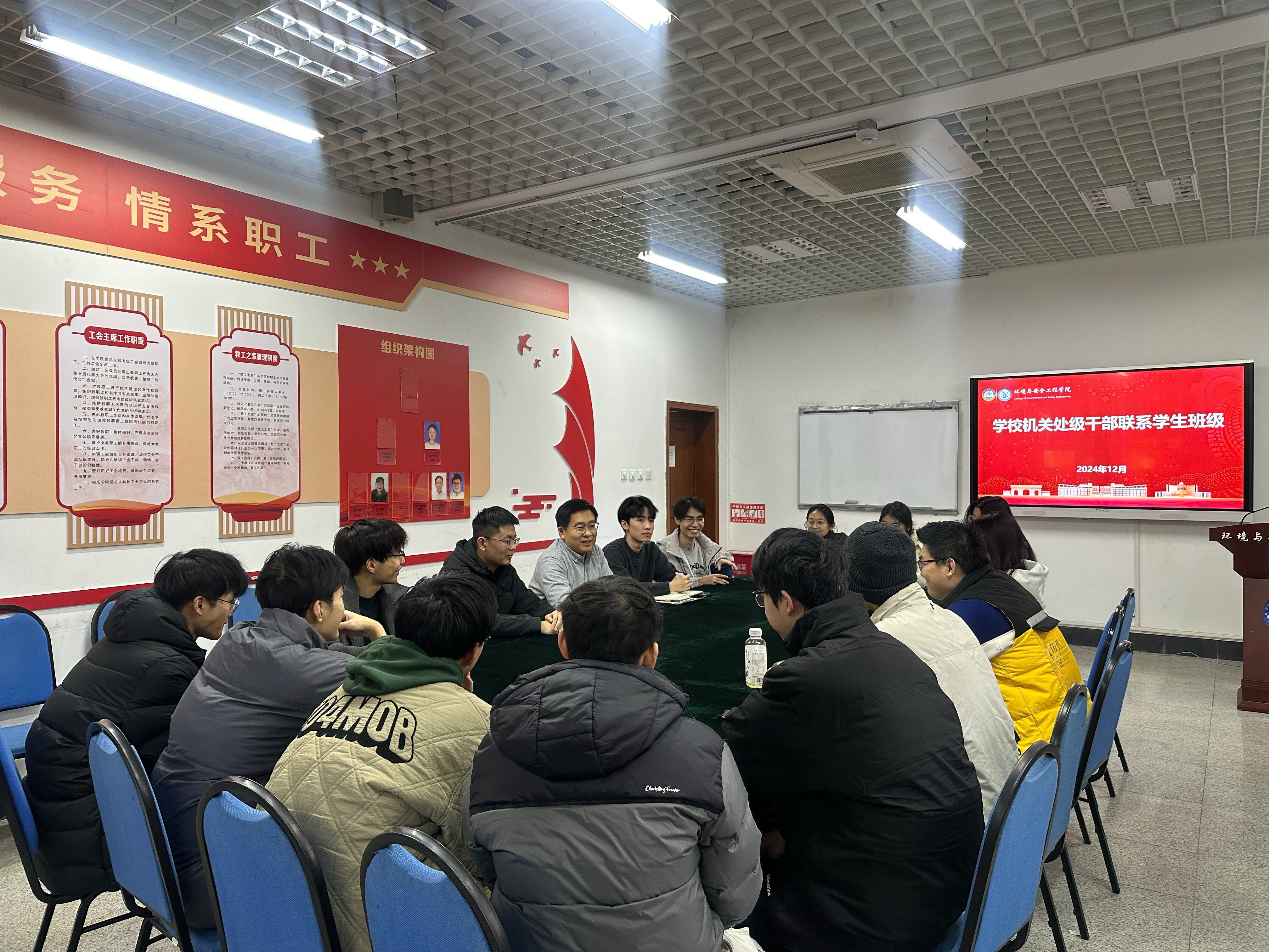 为全面落实立德树人根本任务,充分发挥党政领导干部管理育人、服务育人的作用,按照学校机关处级干部联系学生班级相关要求,12月6日下午,环境学院在环境楼3015会议室开展学校机关处级干部联系班级主题班会,校团委副书记李浩、学院辅导员张栩宁、环境231班学生参会。