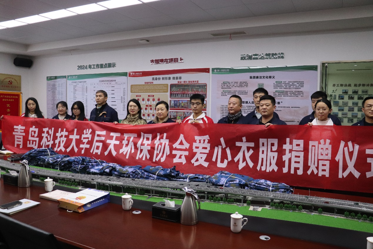 为弘扬勤俭节约的中华民族传统美德,进一步增强学生环保意识,促进资源的有效回收利用,12月20日下午,环境学院本科生党支部、后天环保协会赴青岛第一市政工程有限公司东岸2标段项目部党支部开展“‘衣’往情深”军训服捐赠活动。