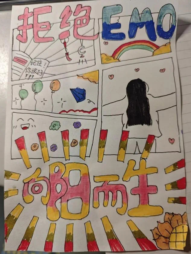 通过“拥抱生活”创意活动,让同学们用画笔描绘 “理想中的自己”或“当下的生活状态”或亲手制作一件小礼物,通过艺术创作或手工实践,鼓励参与者关注自身需求,发现生活中的美好,传递爱与温暖。