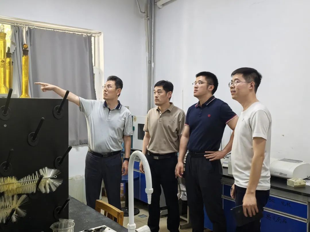 检查人员首先对实验室准入制度、安全培训记录、应急预案完善程度等实验室安全管理制度落实情况进行检查,田文德指出,师生要严格遵循制度要求,规范穿戴实验服,详细询问实验室管理人员关于制度执行中的问题和困难,并现场给予指导和建议。