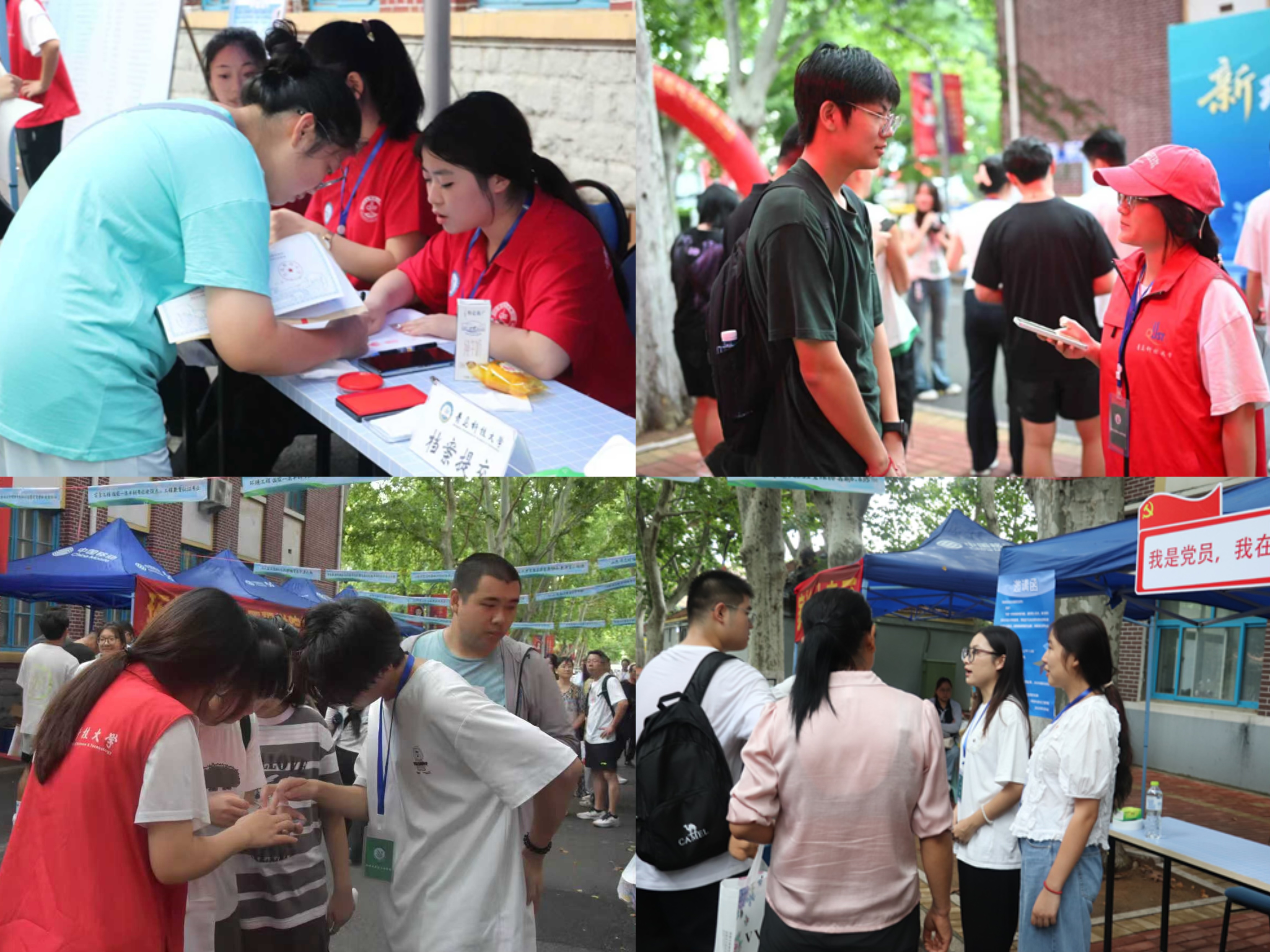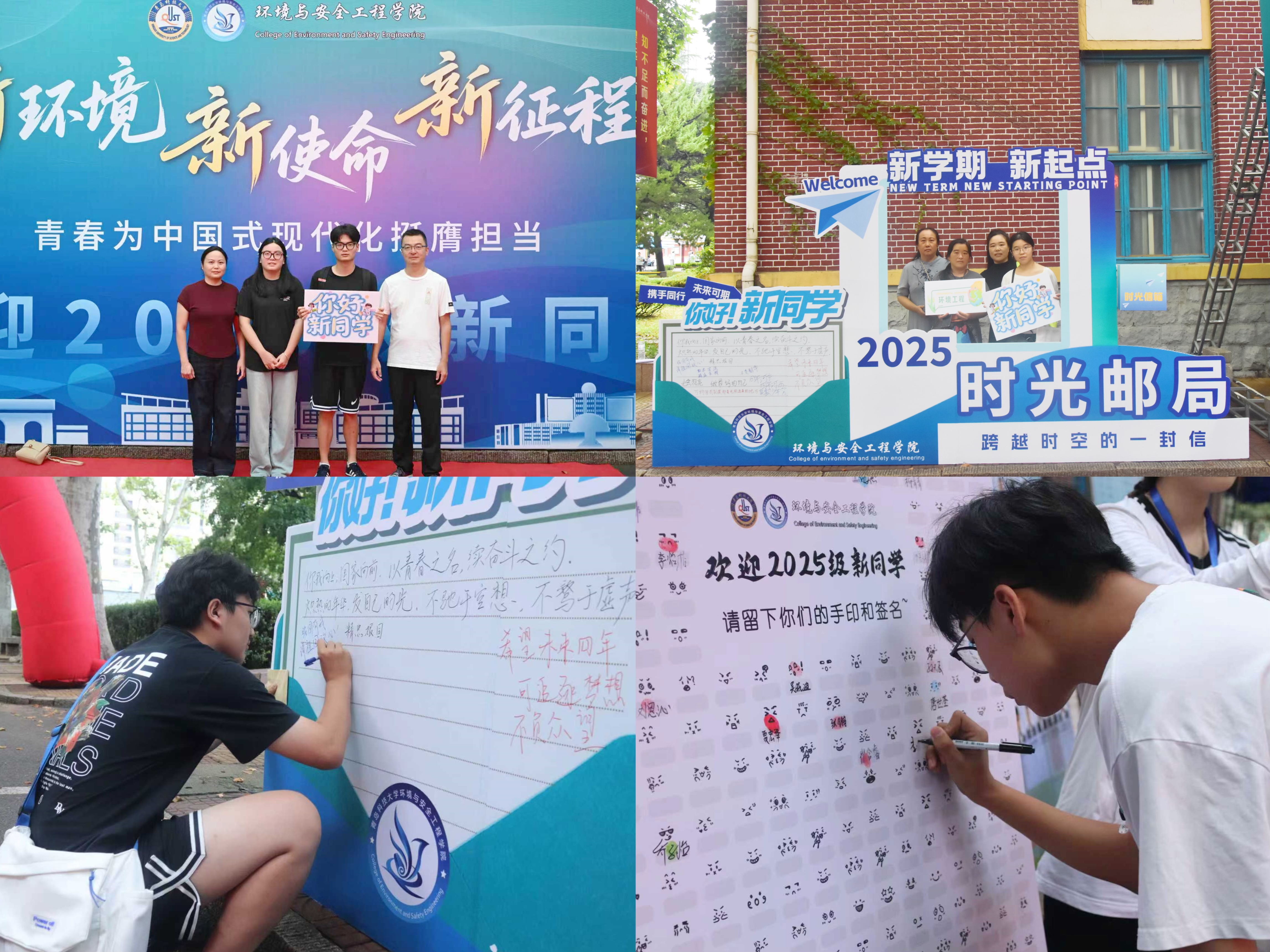 精“新”布置,特色展示亮点纷呈。学院精心布置报到点,结合纪念中国人民抗日战争暨世界反法西斯战争胜利80周年主题,融合思政元素,设置了“新环境 新使命 新征程 青春为中国式现代化挺膺担当”主题喷绘,手举标语KT板,现场新生和家长们纷纷在迎新展板前拍照打卡,定格和青科大环境学院的第一张合影。“签名印章墙”前新生郑重签上姓名、按下手印,留下与环境学院的第一个约定。打造“时光邮局”开展跨越时空对话,引导新生写下对革命先辈的崇敬之情和自己未来的励志理想。