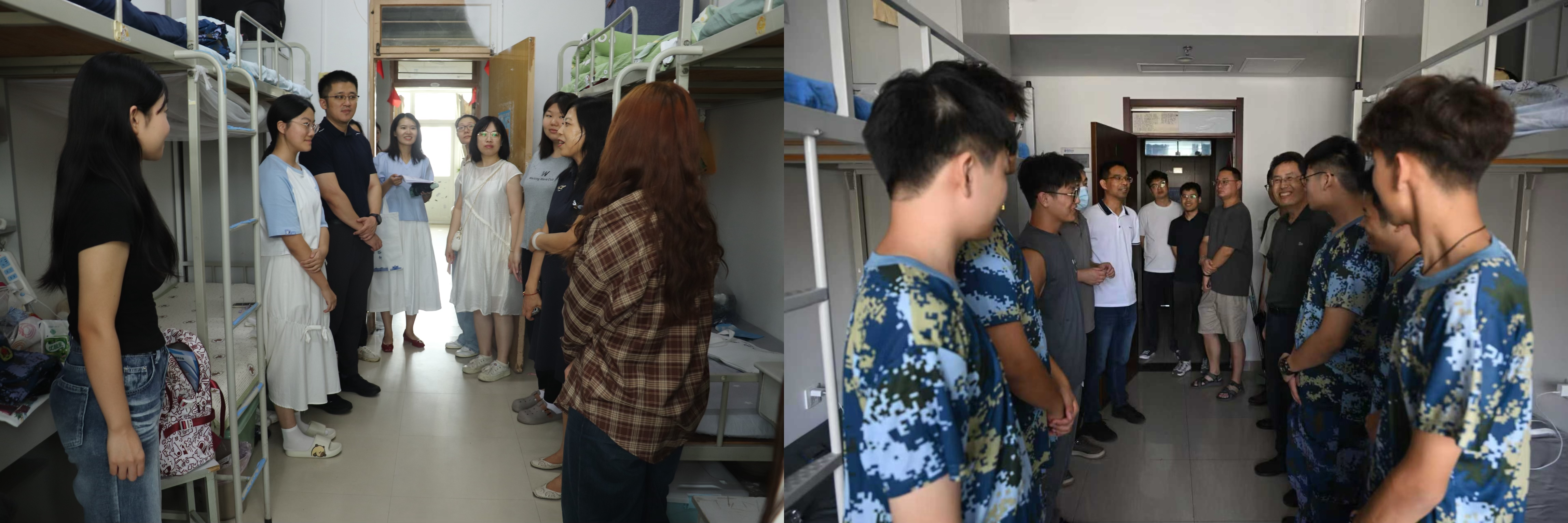 暖“新”走访,深入寝室关怀备至。新生入学当天,学院班子成员深入学生寝室,查看新生住宿条件,关心新生的生活起居。每到一处,老师们亲切地与新生们交谈,询问他们来自哪里、饮食习惯是否适应、有无困难等,并细心查看了宿舍的卫生状况和安全设施,确保每位新生都能在一个安全、舒适的环境中学习和生活。走访过程中,老师们对新生们表示了热烈的欢迎和诚挚的祝福,勉励新生们要珍惜大学时光,努力学习专业知识,积极参与校园文化活动,不断提升综合素质。此外,老师们分别就学生管理、课程安排、学业指导等方面与新生们进行了深入交流,耐心解答新生们的问题和困惑。