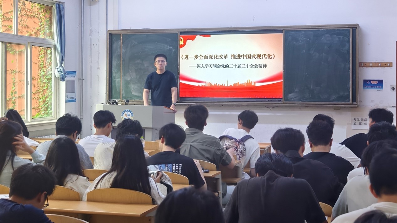 宣讲会上,宣传团成员围绕党的二十届三中全会的历史方位、核心要义、精神实质进行了系统梳理和深入解读。他们结合当前国家发展面临的新形势新任务,重点阐释了全面深化改革、推进中国式现代化等重大理论和实践问题。宣讲内容紧扣时代脉搏,逻辑清晰,论述深刻,既有理论高度,又紧密联系实际,特别是结合了我国生态文明建设、国家安全体系构建等与环境与安全工程学科专业密切相关的领域进行了生动阐述,帮助同学们更好地理解国家战略与个人专业学习、未来发展的内在联系。