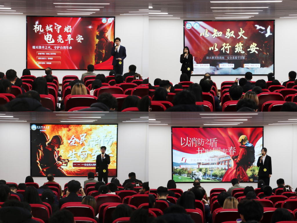 2025年11月是第34个“全国消防月”,为筑牢校园消防安全防线,提升大学生安全应急能力,12月2日,学校“全民消防、生命至上——安全用火用电”第十届大学生消防安全知识竞赛决赛在四方校区举行。3个校区8个学院相关负责人及师生代表参与此次决赛。