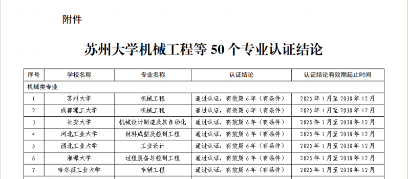 安全工程专业通过工程教育专业认证