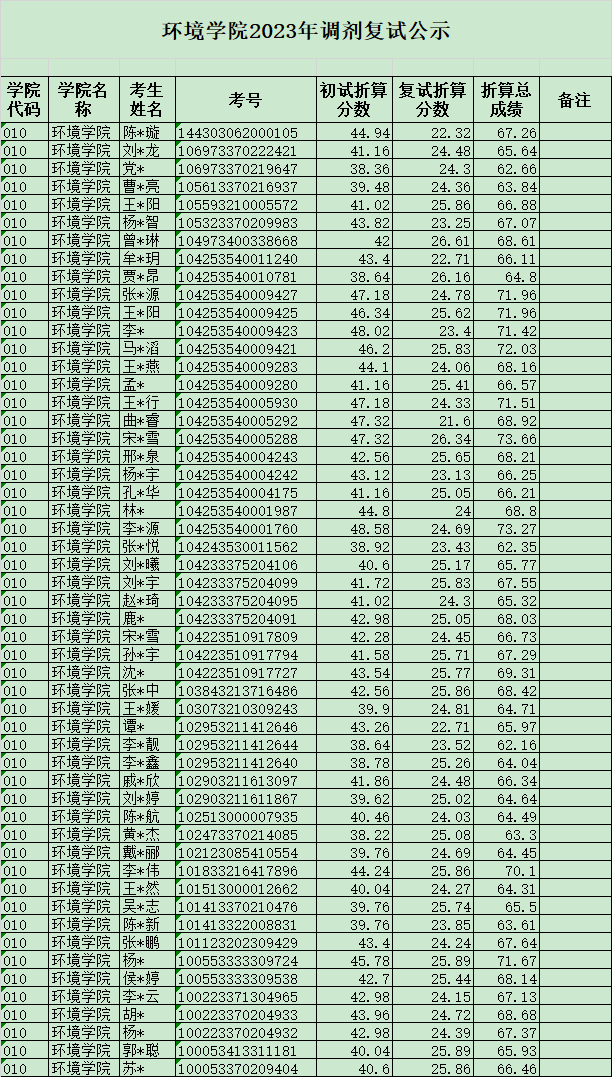 环境学院2023年硕士研究生调剂(第二批)工作通知