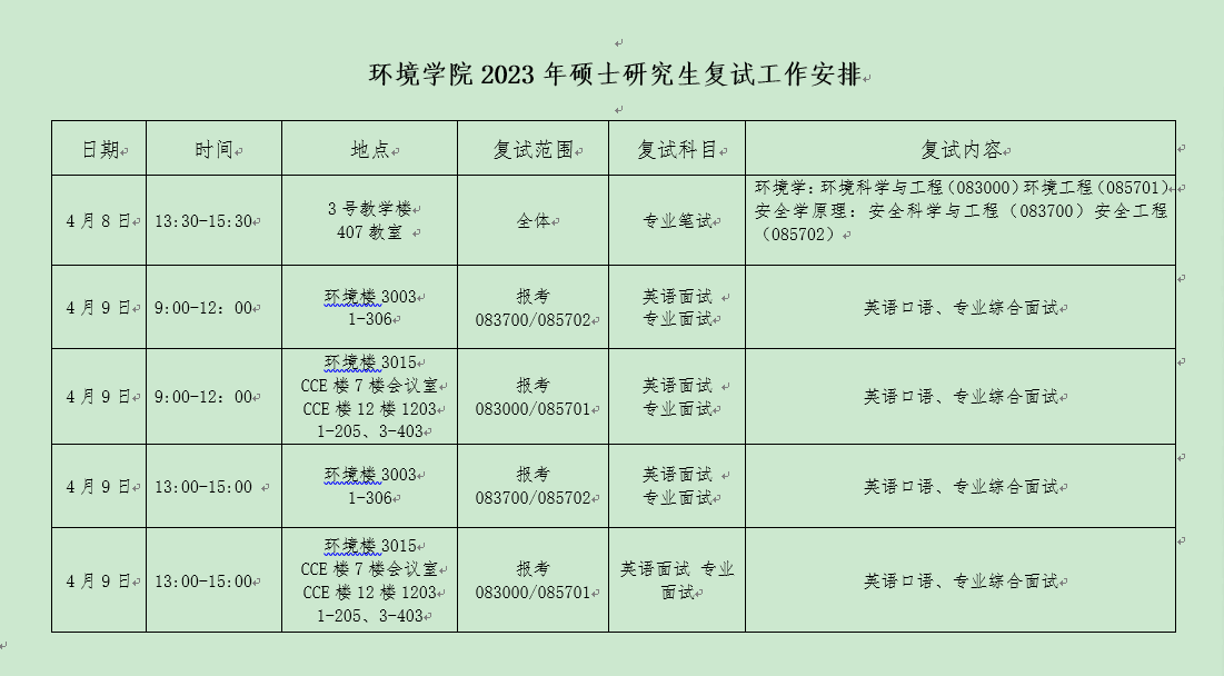 环境学院2023年招收攻读硕士学位研究生调剂复试工作安排