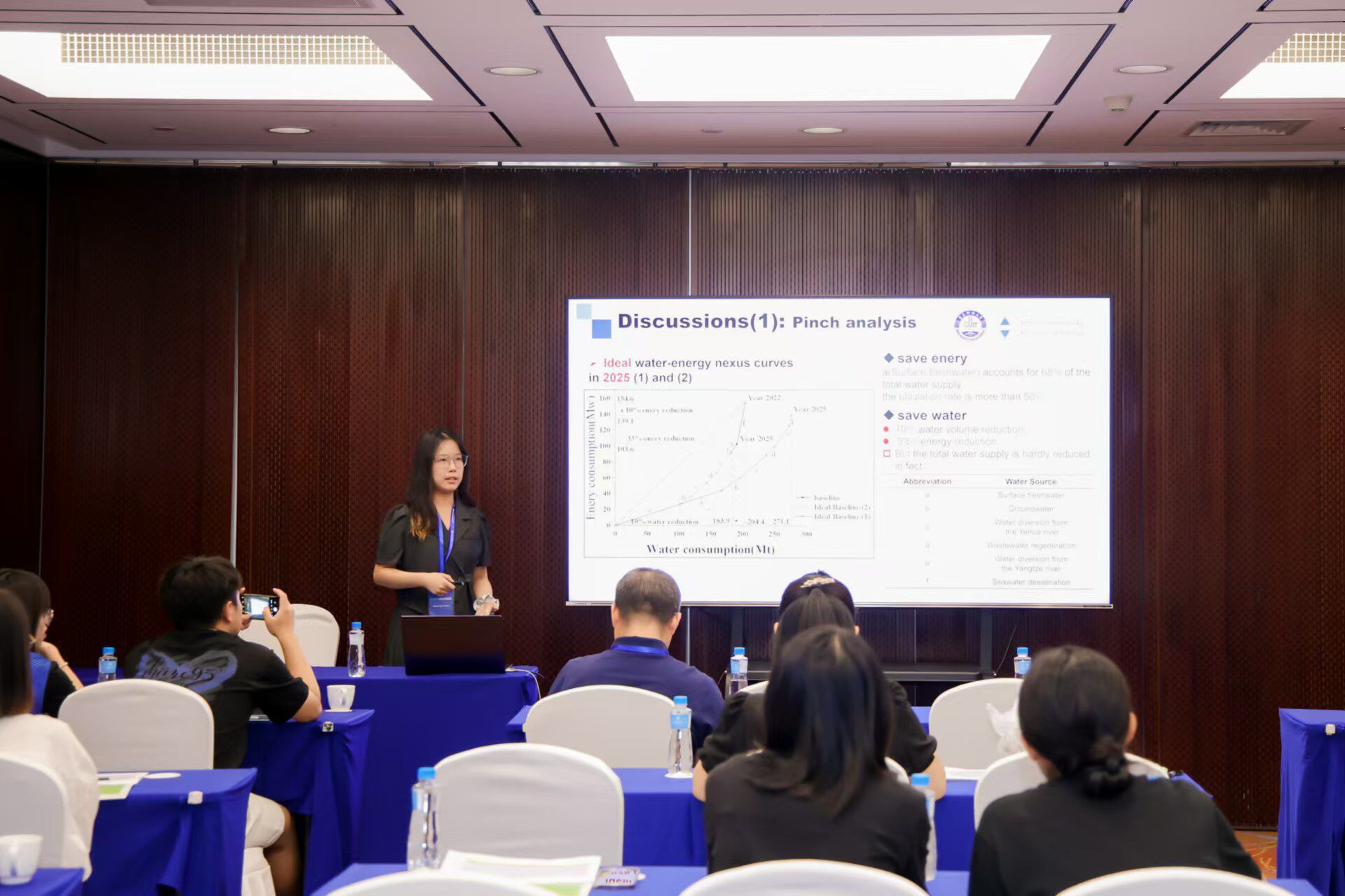 会议中,研一学生张慧中以“Pinch Analysis for Water-energy Nexus in Urban Water Systems”为题,全英文系统地介绍了过程集成方法在环境系统领域的进展和最新应用,得到了在场同行的认可。