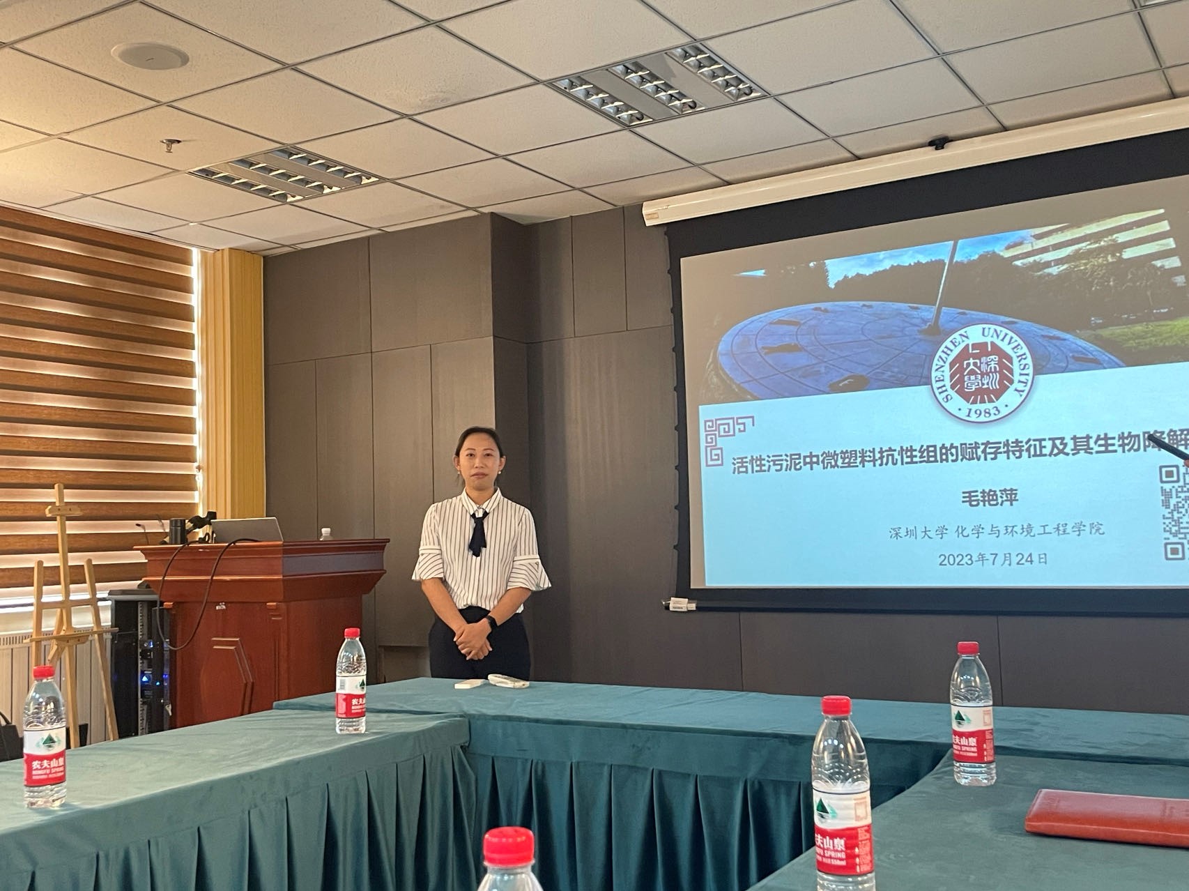 7月24日,应学院张杨教授邀请,深圳大学化学与环境工程学院毛艳萍副教授到访并在学院做了题为《活性污泥中(微)塑料抗性组的赋存特征及其生物降解特性研究》的学术报告,会议由张杨教授主持,多个课题组师生参加了报告会。报告会中,毛教授指出塑料污染已成为全球生态安全和人类健康的威胁。塑料在自然环境中会分解为微塑料,并聚集抗生素抗性基因。然而,有关微塑料表面生物膜中抗性组、赋存菌群与抗生素抗性基因之间的相互作用等方面仍需进一步研究。活性污泥菌群对于降解有机污染物具有一定能力,因此挖掘这些菌群对塑料的潜在降解能力非常重要。