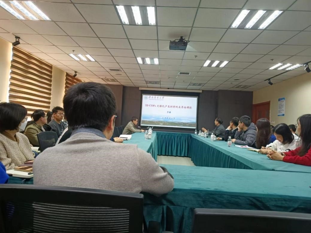 李鑫博士进行了题为“2D COF光催化产氢材料的界面调控”的报告,为师生介绍了所做研究的最新进展,师生对李鑫博士的精彩报告进行了的热烈的讨论。