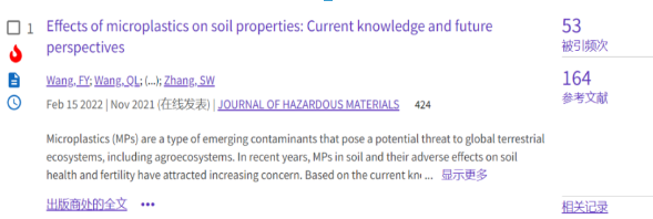 (1)论文1发表于环境类top期刊《Journal of Hazardous Materials》(https://doi.org/10.1016/j.jhazmat.2021.127531),累计被引53次。该文系统评述了微塑料对土壤物理性质、化学性质和微生物学性质的影响,并探讨了当前研究的不足,指明未来需要加强的研究方向。
