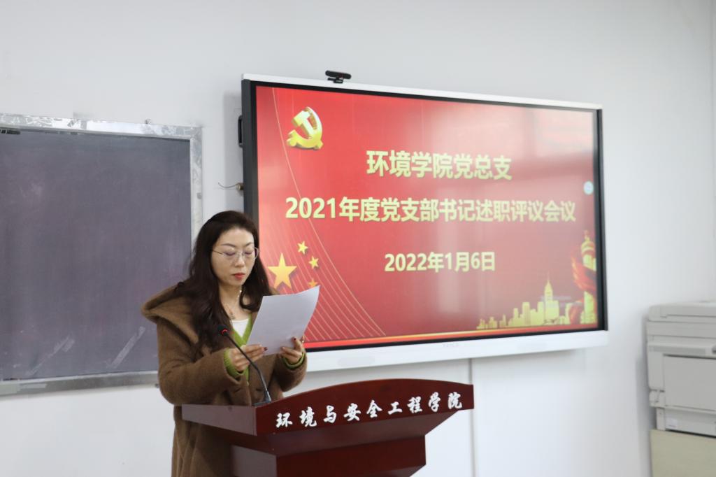 为深入学习贯彻习近平新时代中国特色社会主义思想和党的十九届六中全会精神,进一步压实党支部书记履行全面从严治党责任,推动全面从严治党向基层延伸,切实提高党的建设质量,环境学院于1月6日下午在3015会议室召开2021年度党支部书记述职评议会议。学校党委副处级组织员宋飞、学院党政领导、党总支委员、各党支部书记、教研室主任出席会议。会议由学院党总支书记王青主持。