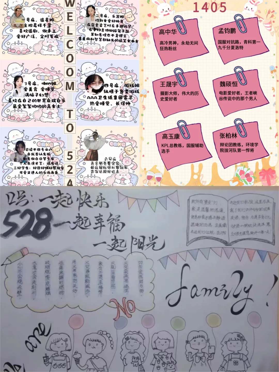 各宿舍成员充分发挥想象力和创造力,结合宿舍成员个性特点,通过卡通设计、绘画述说、ps制作等方式,创新设计寝室名片。