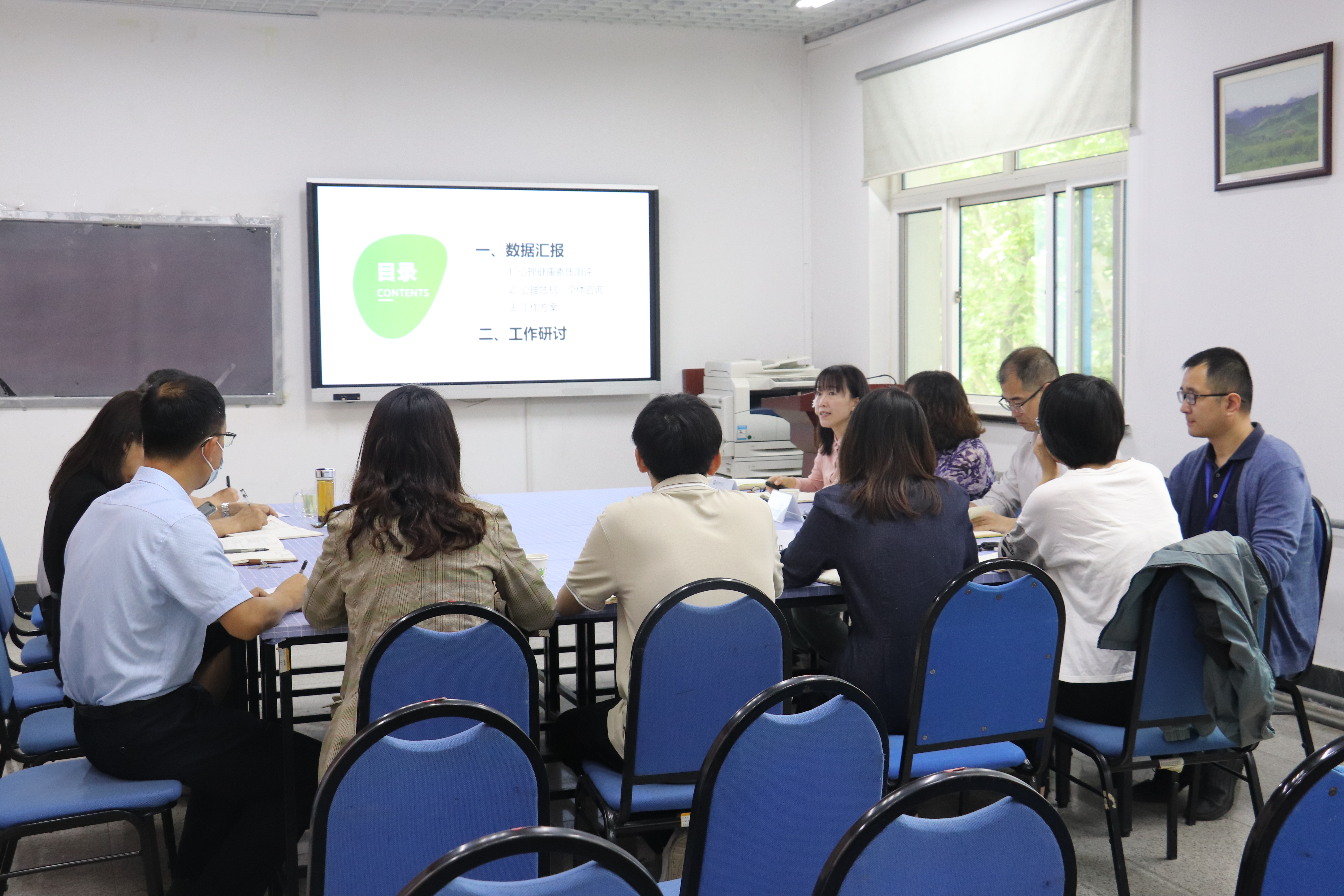 会上,李海玲结合近三年环境学院心理测评数据进行了系统分析,并就有关情况做了说明,环境学院参会人员结合分管工作与学生处一行进行了沟通交流。