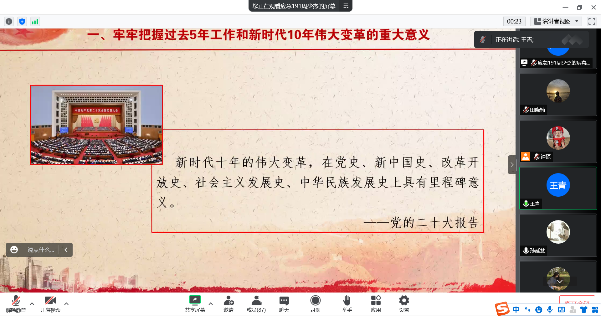 环境学院党总支书记王青给学院全体师生党员上党的二十大精神专题党课